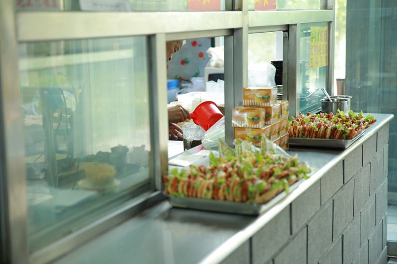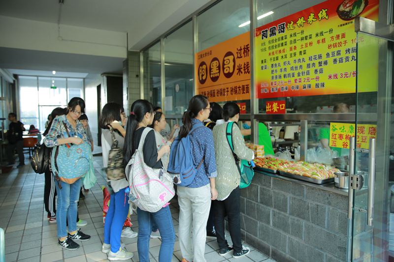 然而僅是早餐種類和數量上的增多是不夠的。記者了解到,考慮同學不同時間段的用餐需求,食堂的工作人員每天凌晨4:30就開始準備早飯;值班經理也在同一時間到達學校進行安全把關。負責打飯的工作人員每天提前10分鐘上崗,并在高峰期新增兩個窗口,保證6個隊伍同時可以購買早餐,節約排隊時間。張小奕同學說,“最開始的時候,只要稍微晚起了一會,就會看見窗口的隊伍非常長,經常排到自己的時候有些愛吃的已經沒有了。還好食堂及時調整,不僅吃到了想吃的東西,而且有足夠的時間做課前準備。”15級新生李楠也興奮地告訴記者,“以前每天晨跑之后就要趕緊跑去食堂,一個人排隊,一個人占好位置,現在就方便許多,食堂從6:40就可以就餐,部分同學選擇晨跑之前吃飯,兩個就餐高峰分開,人少了許多,也不用再去占座位了。” 不僅如此,為了方便教學區晨讀晨練的學生用餐后直接上課,后勤處特別在師生服務中心食堂、文二樓一層同時為同學們準備了早餐。