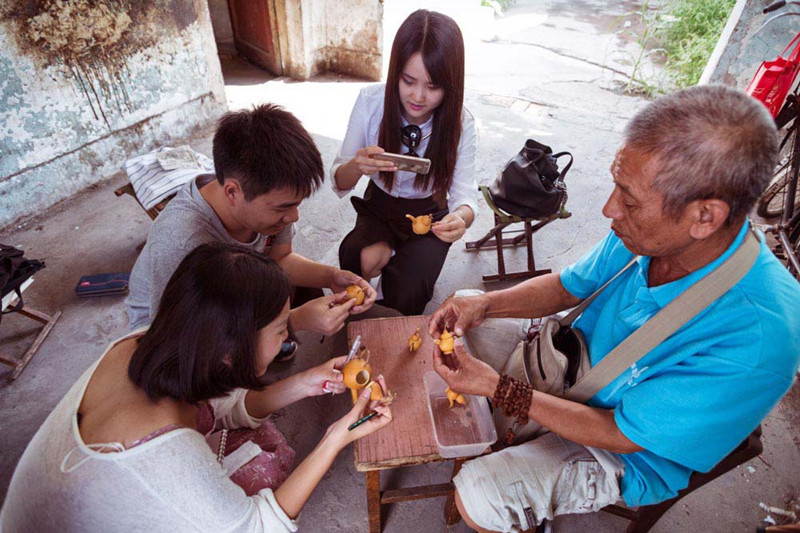 何思倩帶領(lǐng)整個團(tuán)隊在大柵欄地區(qū)為期半年的調(diào)研工作中,尋找著那些隱于市的手藝與文化,借由手繪的方式與大柵欄每一位手藝人進(jìn)行對話,用民藝手繪向民藝守護(hù)者、傳遞者致敬。他們深度走訪了十幾位手工藝?yán)辖橙?,為手藝文明留下了一批重要的文化檔案。團(tuán)隊從[品滋味]、[訪藝文]、[問巧工]、[尋禮俗]這四個角度在大柵欄開啟了手工藝尋訪之旅。他們對老手藝的用材、工藝流程、制作步驟等進(jìn)行一一解讀,不僅為公眾普及手工藝知識,也為手藝人“發(fā)聲”,一起找回被時代逐漸遺忘的“滋味”、“巧工”和“禮俗”。