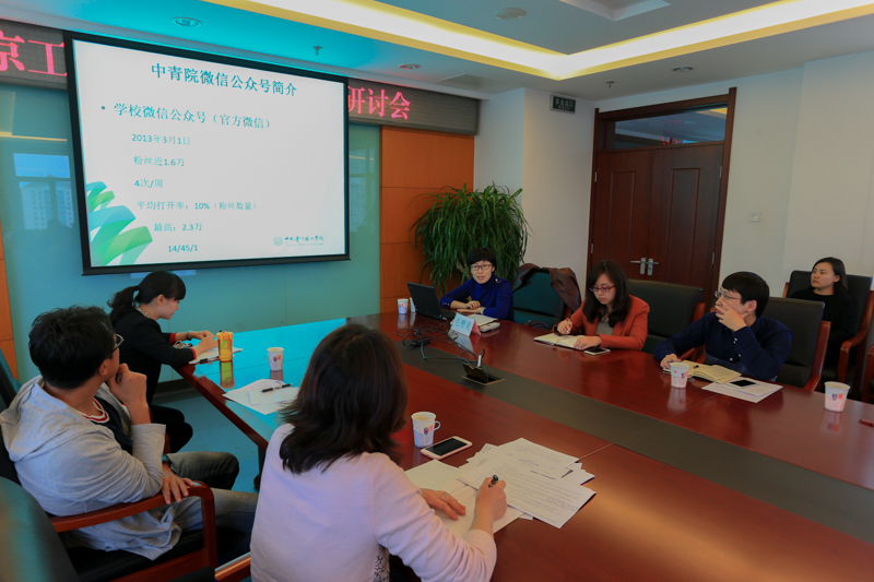 黨委宣傳部張揚、經(jīng)濟學院單紫薇、圖書館劉亮分別就學校官方微信和部門微信平臺的運營和建設工作進行了介紹。張揚介紹了高校微信平臺的發(fā)展概況,重點就我校官方微信的定位、內(nèi)容設計、運營團隊、專題策劃、編輯審核、文章閱讀量以及功能研發(fā)進行了說明,介紹了《北京工商大學校園微博微信公眾平臺管理規(guī)定(暫行)》出臺的背景和主要內(nèi)容,就目前已統(tǒng)計的學校各微信公眾平臺情況進行了說明。單紫薇介紹了經(jīng)濟學院微信公眾號“小犇陪你聊經(jīng)院”的基本情況、運行機制、內(nèi)容載體及努力方向,介紹了學院微信公眾平臺在堅持校園文化育人、價值觀引導、宣傳學院工作等方面的探索,并結(jié)合調(diào)研的學院學生需求和有關(guān)高校微信運維經(jīng)驗,就如何利用微信優(yōu)勢做好高校學生思想工作分享了體會。劉亮介紹了圖書館微信服務號開通兩年多來的內(nèi)容發(fā)布和運維情況,就結(jié)合師生需求在微信開通的即時溝通、智能應答、借閱信息查詢、資源檢索及利用等服務內(nèi)容進行了說明,并就圖書館微信的管理機制及服務號認證工作進行了詳細說明。