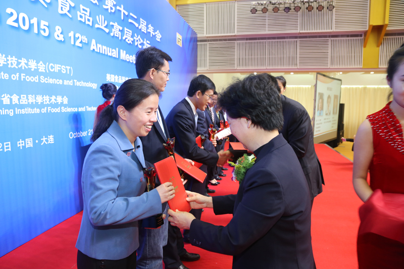 大會頒獎儀式上,我校食品學院王靜教授榮獲2015年度中國食品科學技術學會科技創新獎-杰出青年獎;食品學院王成濤教授榮獲2015年度中國食品科學技術學會科技創新獎-優秀論文一等獎;食品學院曹雁平教授指導的張澤宇、牛悅等學生榮獲2015年度李錦記杯學生創新大賽三等獎。