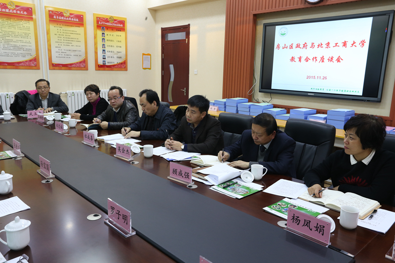 最后,孫寶國校長代表學校對房山區委區政府以及各部門一直以來的支持表示感謝,希望通過雙方合作實現共贏。孫校長談到,從戰略上考慮,工商大學將扎根良鄉,房山與工商大學的合作是戰略的合作,是面向未來的合作。在合作過程中,充分發揮大學的作用,為房山教育提供力所能及的支持。近年來,房山基礎教育突飛猛進的發展,為我們今后合作增強了信心;房山老師的敬業精神和責任心,也增強我們合作的信心。孫校長希望雙方進一步商討,為下一步合作打下良好的基礎,希望在合作過程中,心往一處想,勁往一處使,辦讓人民滿意的教育。