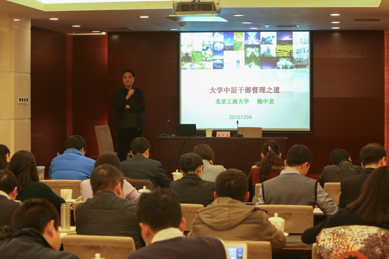 培訓內容涵蓋如何做好職能部門管理工作、學院管理工作、學校管理工作流程、財務工作制度等四個方面。學校辦公室(黨委辦公室)主任王小藝做了題為“加強修養、敢于擔當、勇于創新、為學校轉型發展而奮斗努力”的報告,與大家探討了領導干部應具備的能力素養、學校轉型發展的重要工作以及學校辦公室管理工作流程;教務處處長魏中龍從為人、處事、管理和修身四方面闡述了大學中層干部的管理之道;財務處處長陳軻講解了國家、北京市財務管理要求和學校財務管理制度,強調要規范管理,用好經費,做遵守財經紀律的表率;理學院院長曹顯兵闡述了做中層干部的幾點思考,從有信心、有方法和有原則三方面與新提任中層干部分享了做中層領導干部的體會和要求。