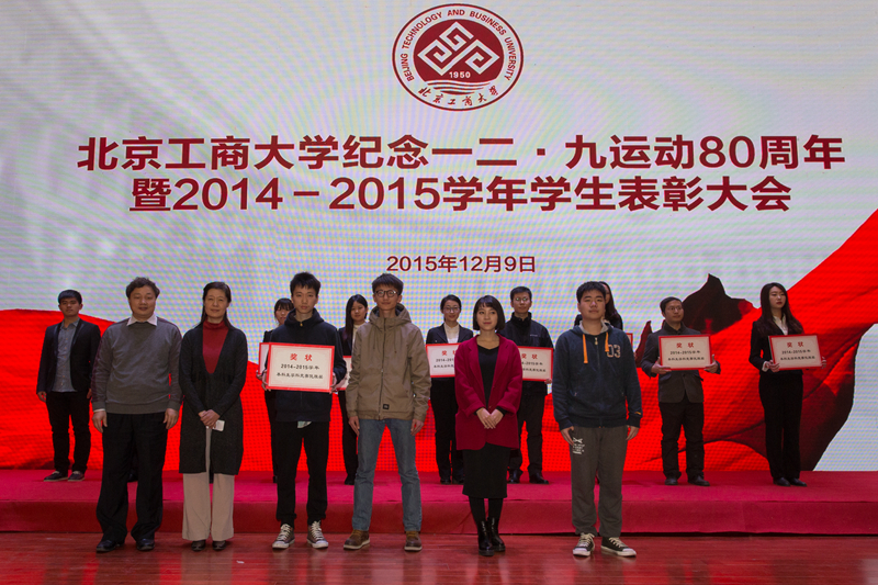 為引導和激勵大學生繼承和弘揚愛國精神,表彰優秀,樹立榜樣,12月9日,學校紀念一二•九運動80周年暨2014-2015學年學生表彰大會在良鄉校區召開,會上表彰了9類獲得市級以上獎項的學生集體和個人。校長孫寶國院士、黨委副書記張德玉、副校長謝志華、方德英出席活動,并與嘉賓一同為獲獎學生頒獎。相關職能部門負責人、各學院黨政領導、教師代表、市級獲獎學生代表、2015級本科生代表參加表彰會。