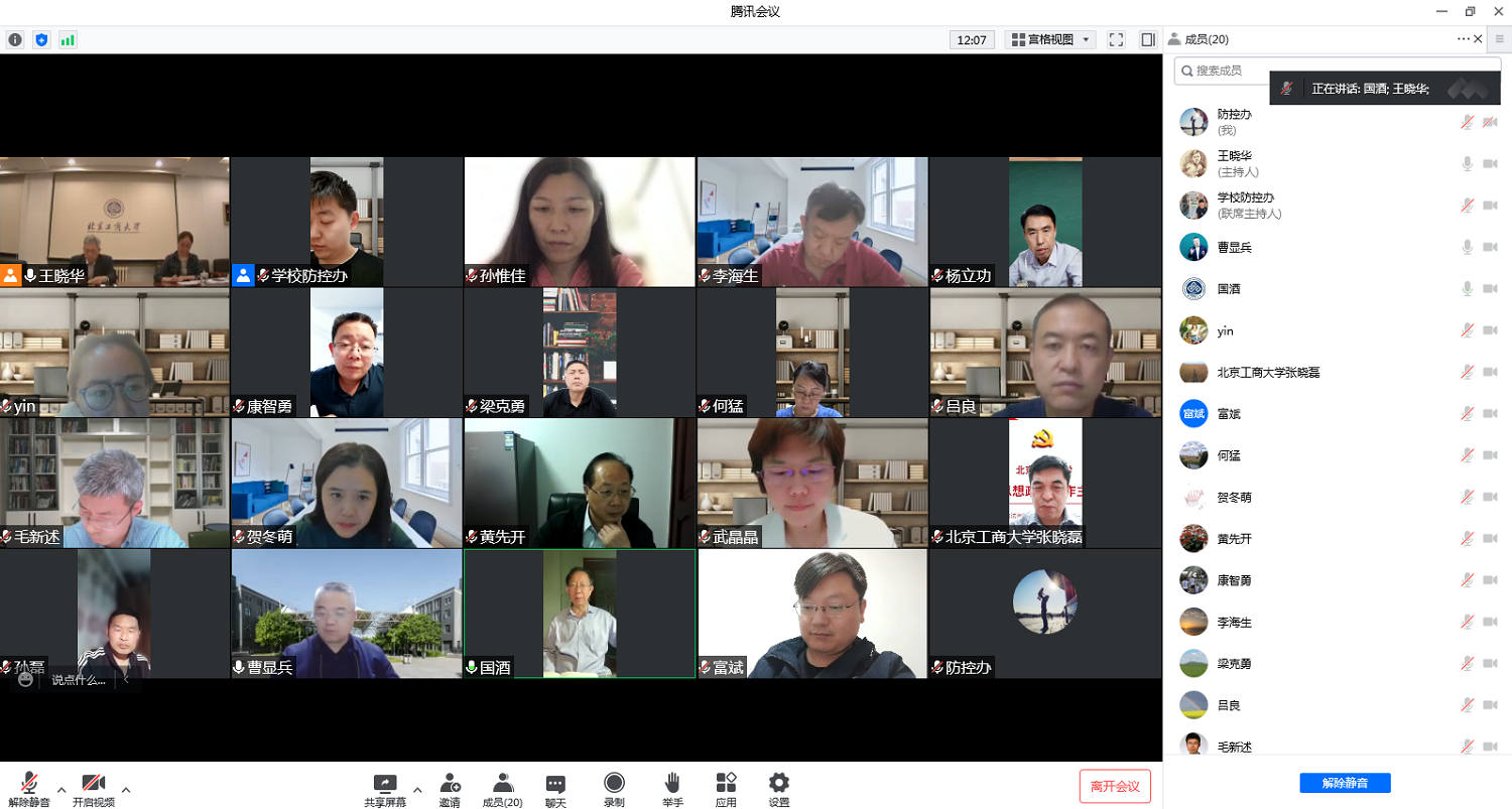 學校辦公室主任王曉華傳達了蔡奇書記在疫情防控工作會議上的講話精神,結合學校臨時管控期間工作,匯報了校領導在阜成路校區檢查疫情防控工作、慰問在崗教職工情況,同時匯報了學校臨時管控區內核酸檢測情況,并就當前存在的問題進行了梳理和分析。