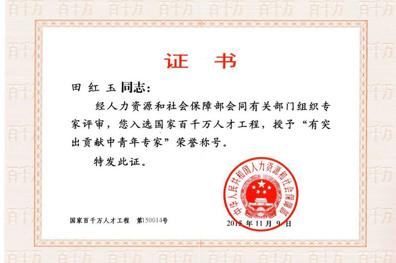 12月,食品學(xué)院田紅玉教授入選2015年國(guó)家百千萬(wàn)人才工程,并被授予“有突出貢獻(xiàn)中青年專家”榮譽(yù)稱號(hào)。至此,我校已有三名教授入選國(guó)家百千萬(wàn)人才工程。