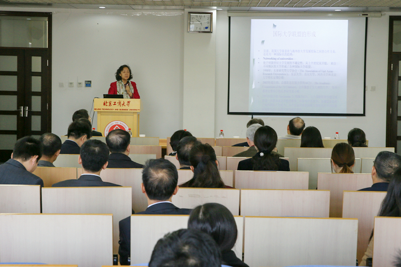 國際講堂特邀嘉賓中國科協國際聯絡部副部長王慶林以北京理工大學的國際化建設為實例,詳細闡述了北京理工大學國際化戰略的發展和實施,從高校國際合作平臺建設、來華留學教育、高端引智項目、學生海外交流、學科專業國際化認證等方面詳細介紹了北京理工大學在國際化建設方面的先進經驗和做法,并對高校在國際化建設方面的發展思路和重點提出了相關建議。