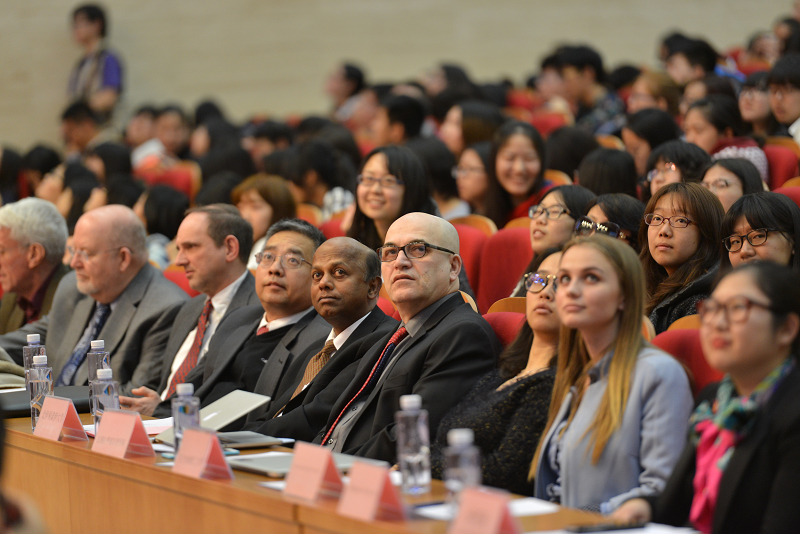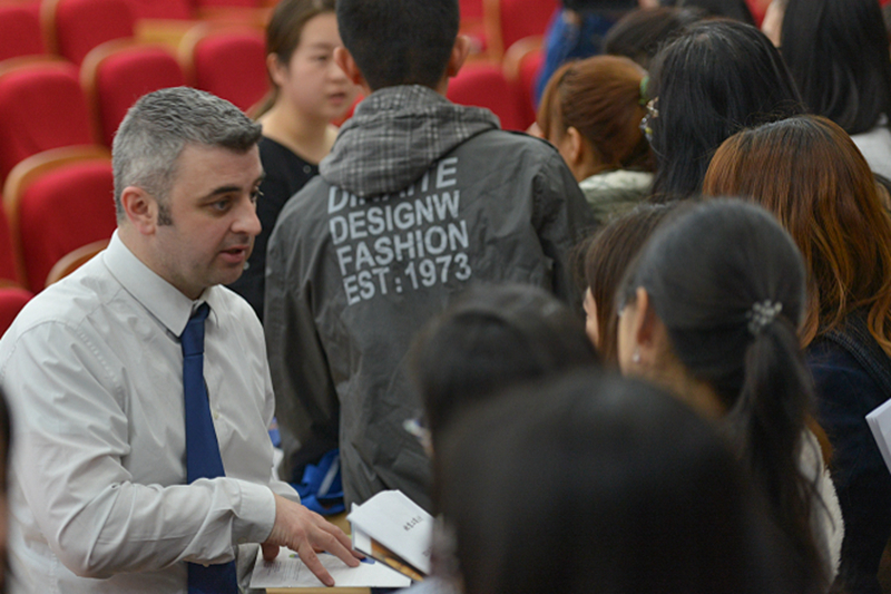 國(guó)際合作伙伴院校的代表團(tuán)成員分別向參會(huì)學(xué)生介紹了派出學(xué)生項(xiàng)目,歐洲大學(xué)區(qū)域招聘主管金·羅賽特(Jin Roset)、荷蘭方提斯國(guó)際商學(xué)院輔修專業(yè)團(tuán)隊(duì)領(lǐng)導(dǎo)丹尼爾·萬(wàn)·梅里斯(Daniel·van·Melis)、芬蘭哈姆理工大學(xué)代表尤利婭(Iullia)、法國(guó)拉羅謝爾商學(xué)院中國(guó)區(qū)代表林芳、美國(guó)北伊利諾伊大學(xué)副校長(zhǎng)助理保羅•普拉海科(Paul Prabhaker)、愛(ài)爾蘭考克大學(xué)北京辦公室張蓓、都柏林大學(xué)項(xiàng)目主管肖恩·格里森(Sean Gleeson)、巴西南大河州聯(lián)邦大學(xué)博士研究生蘇珊妮(Susanne)、加拿大紐布倫斯威克大學(xué)商學(xué)院副院長(zhǎng)杜東雷、美國(guó)威斯康辛大學(xué)帕克賽德校區(qū)經(jīng)管和計(jì)算學(xué)院院長(zhǎng)德克·鮑德溫(Dirk Baldwin)、韓國(guó)又松大學(xué)商學(xué)院教授賈克斯·霍華德(Jacques Howard)分別發(fā)言,介紹了各自院校的整體情況、專業(yè)設(shè)置、學(xué)科特色和國(guó)際交流方面的情況。
