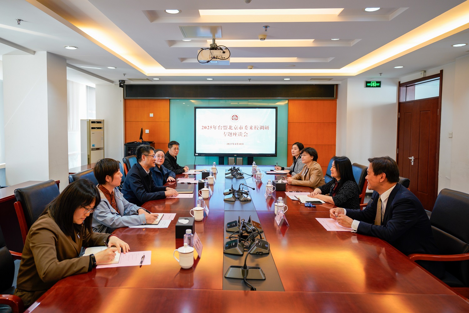 4月10日,全國政協委員、北京市政協副秘書長、臺盟北京市委專職副主委陳偉帶隊,臺盟北京市委聯絡處處長王雪嬌,調研處副處長(主持工作)王琪萍等一行5人來校調研,就深化合作進行座談交流。學校黨委副書記宋曉欣出席并主持會議,黨委常委、黨委組織部部長兼黨委統戰部部長武晶晶,馬克思主義學院教授、海峽發展研究院院長于強參加座談會。