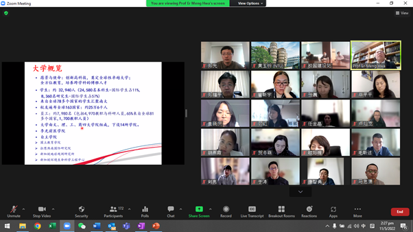 本次培訓(xùn)是學(xué)校首次通過線上方式與境外著名研究型大學(xué)進(jìn)行合作,開展干部培訓(xùn)。干部們表示,本次培訓(xùn)形式新穎、內(nèi)容充實,講座水平高、互動獲益多,南洋理工大學(xué)國際化發(fā)展的歷程和經(jīng)驗,為我校加快和擴(kuò)大新時代教育對外開放、提升國際化辦學(xué)水平,進(jìn)一步提升干部專業(yè)能力和治理水平,具有借鑒意義。期待學(xué)校繼續(xù)舉辦系列干部培訓(xùn),進(jìn)一步提升干部的辦學(xué)治教能力,在新時代建設(shè)高水平研究型大學(xué)新征程上留下無悔的奮斗足跡,以扎實行動和優(yōu)異成績迎接黨的二十大、北京市第十三次黨代會和學(xué)校第三次黨代會勝利召開。