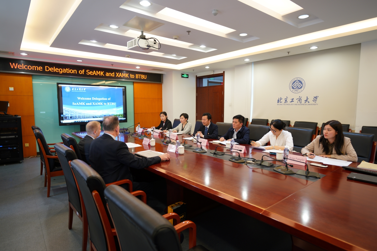劉敏華對兩位校長來訪表示熱烈歡迎。他簡要介紹了學校的發展歷程,以及近年來在人才培養、學科建設、師資隊伍、國際化發展等方面的情況,強調學校正在圍繞商科、輕工和食品優勢方向,推進建設特色鮮明的高水平研究型大學。同時,他對芬蘭人民堅忍不拔的“西蘇”精神給予高度贊揚,表示芬蘭高校在研究與創新領域的積極探索值得學習。他指出,學校非常重視國際交流與合作,將開放作為學校建設的重要方針,希望通過此次訪問,可以增進彼此了解,與芬蘭高校搭建起交流與合作的平臺,未來在人才培養、教師交流等方面開展項目,取得實質性的合作成果。