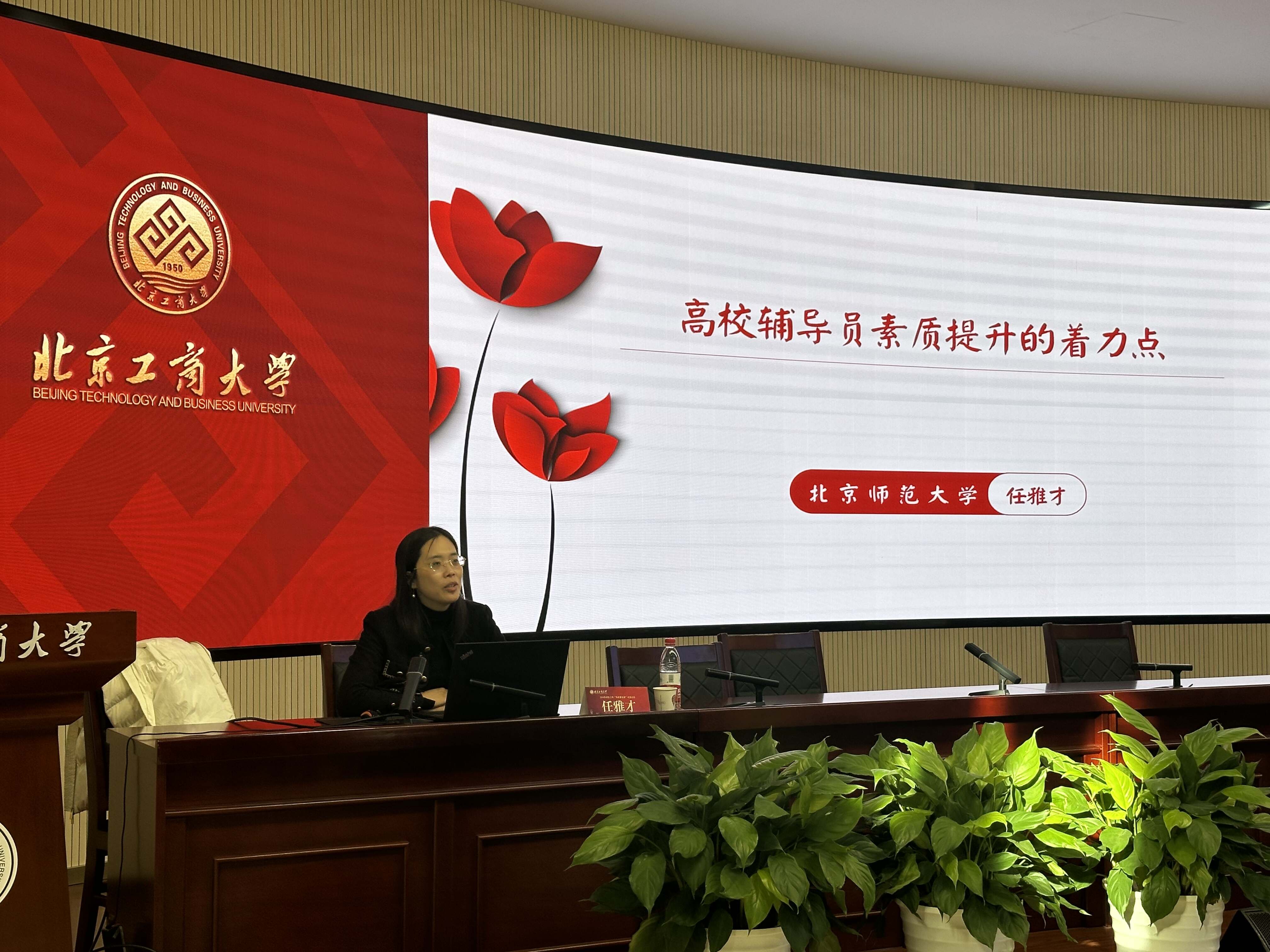 全國“最美高校輔導員”、北京師范大學國際中文教育學院黨委副書記任雅才作了題為《輔導員素質能力提升》的報告,任雅才從卓越輔導員的標桿、如何做好日常工作、如何撰寫發言材料、如何開展理論宣講、如何開展學習科研等五個方面,為與會人員介紹作為輔導員向內發力、向外伸展、向上生長、向下扎根的職業發展路徑。
