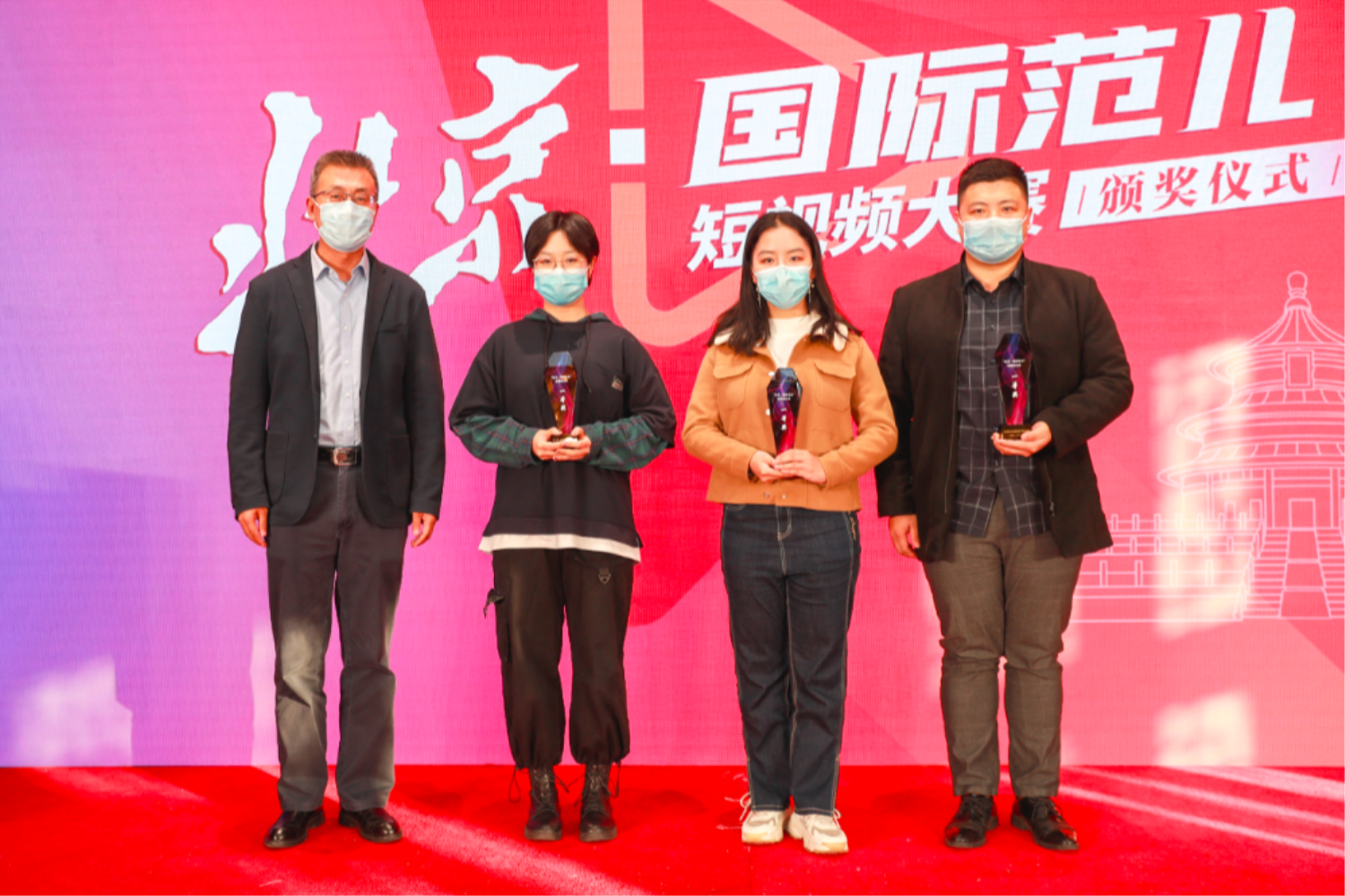 傳媒與設計學院學生在本次比賽中獲得一等獎、三等獎等多個獎項,其中新聞系獲得大賽組織獎,新聞系康凌上臺領取獎杯。頒獎儀式上,新聞專業張雨思代表《這里是海納百川,這里是北京》制作團隊發表獲獎感言。她說:“在討論方案和拍攝的過程中,對‘北京國際范兒’這個主題有了更深的理解。北京作為一個歷史文化名城,作為一個五朝古都,它的國際范兒體現在優秀的歷史文化與國際外來文化的有機融合,這是呈現并體現在作品里的主題。”