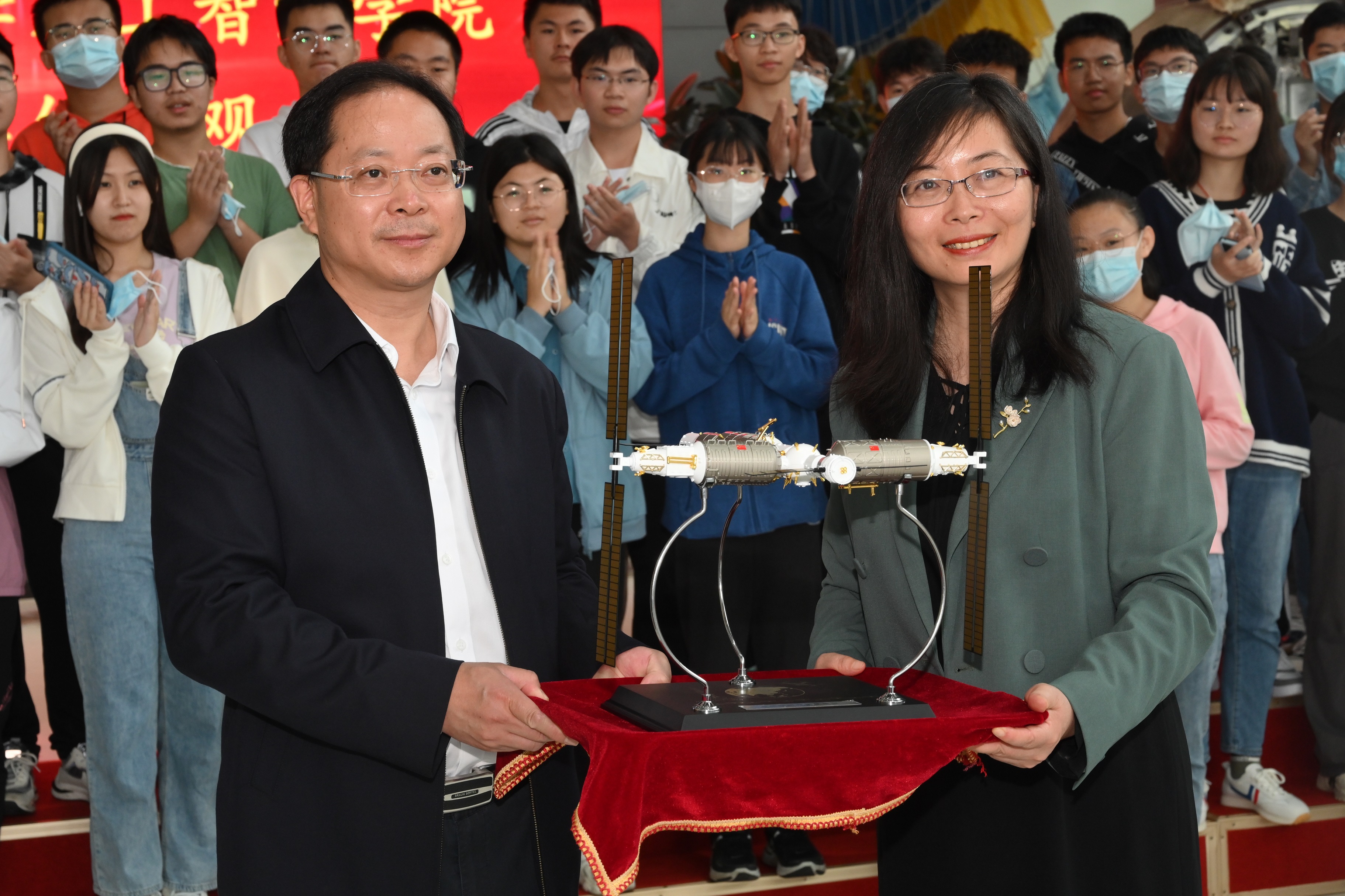 戚發(fā)軔院士向?qū)W生代表贈送了親筆題寫的寄語“仰望星空,腳踏實地”和親筆簽名的“空間站——神州十二號載人飛行任務紀念”郵冊,林益明院長向?qū)W院贈送神州十二號模型。參加活動的學子們紛紛表示,通過這次參觀,感受到了什么是大國重器、什么是大國利器,明白了學好專業(yè)知識的重要作用,更加堅定了愛國主義信念,真切地體會到作為新時代青年人所肩負的建設(shè)祖國的艱巨任務。