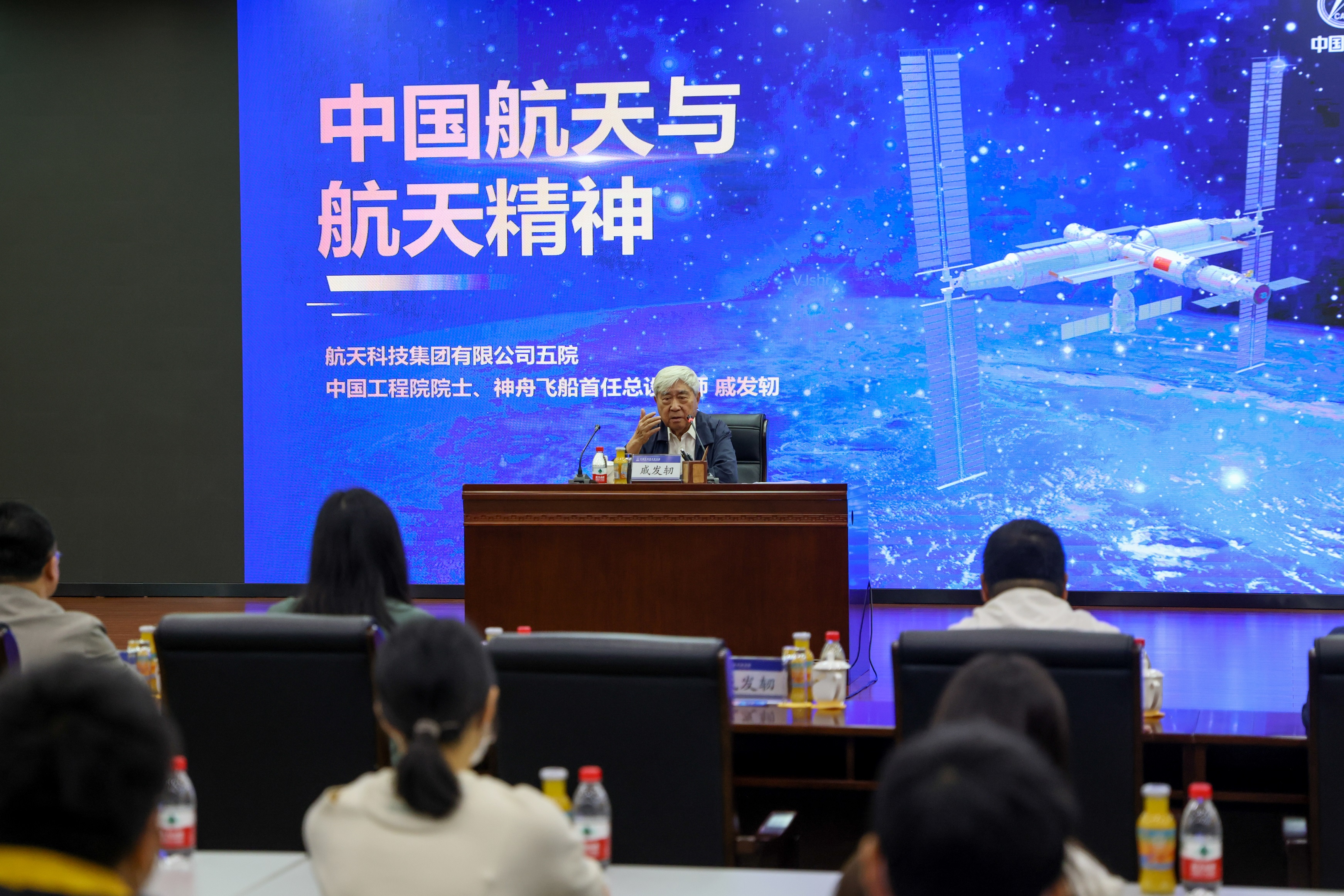 神舟一號到神舟五號總設(shè)計師、曾主持過東方紅一號到東方三號衛(wèi)星研制的戚發(fā)軔院士給師生們上了一堂以《中國航天與航天精神》為主題的生動的愛國教育課。戚發(fā)軔院士從“什么是天,我國為什么要發(fā)展航天事業(yè)”講起,介紹了太空中的三種主要資源對我國發(fā)展的重要戰(zhàn)略意義。他介紹中國航天發(fā)展歷程,用親身的經(jīng)歷和質(zhì)樸有力的語言詮釋了“特別能吃苦、特別能戰(zhàn)斗、特別能攻關(guān)、特別能奉獻”的航天精神和“熱愛祖國、無私奉獻,自力更生、艱苦奮斗,大力協(xié)同、勇于登攀”的“兩彈一星”精神。他強調(diào),青年學子要有一顆愛國心,要愛學習、愛專業(yè)、愛國家、愛民族;要仰望星空,腳踏實地,把愛國之心化為報國之行。現(xiàn)場學子用熱烈的掌聲對戚發(fā)軔院士表達了崇高的敬意。