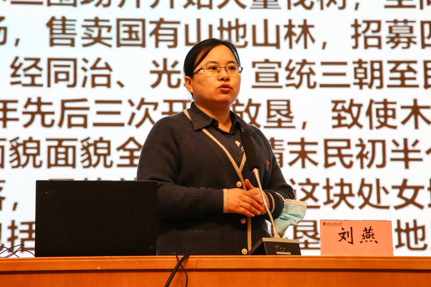 劉燕從牢記使命、艱苦創業、綠色發展三個方面對塞罕壩精神的精髓要義做了解讀。牢記使命是塞罕壩精神的靈魂,是塞罕壩從荒原孤樹再現為百萬林海的精神指引。她提到,塞罕壩工程的最初的作用是為首都防風固沙、為京津涵養水源,而這也是一代代建設者們一直堅守的初心使命。在面對惡劣的環境時,塞罕壩人從未退縮,時刻堅守在自己的崗位上。可以說,艱苦創業精神就是塞罕壩林場砥礪奮進的力量源泉。接下來,劉燕詳細介紹了塞罕壩林場三個階段的綠色發展目標。進入新時代以來,塞罕壩人的堅持為塞罕壩地區帶來了可觀的經濟效益和生態效益,增強了其可持續發展的能力。劉燕指出,綠色發展是塞罕壩精神的主題,是塞罕壩林場實現可持續發展的必由之路。