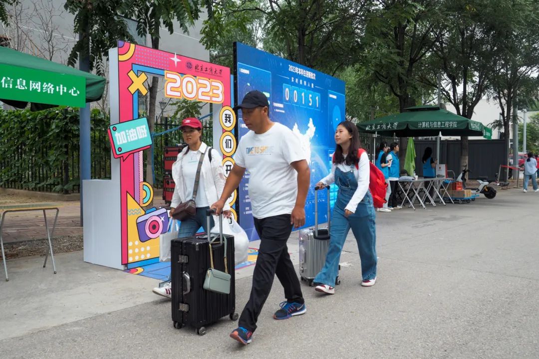 “你好,新同學(xué)!”隨處可見的指示牌、條幅和展板,滿滿當(dāng)當(dāng)?shù)摹靶律蠖Y包”,井然有序的迎新站點(diǎn),熱情洋溢的老師和志愿者們,都在告訴每一名新生:北工商歡迎你!