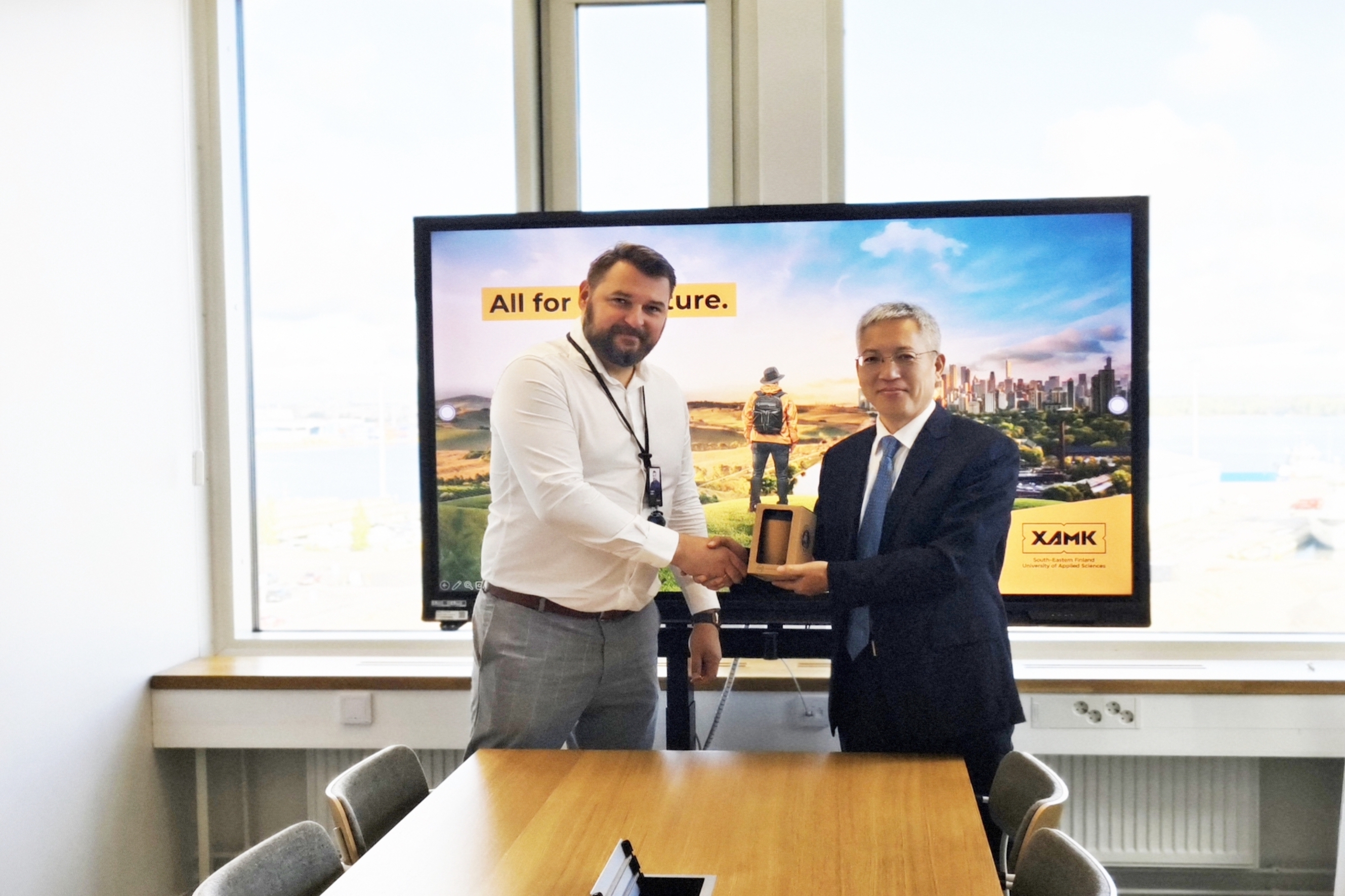 9月17日,在芬蘭卡亞尼應用科學大學訪問期間,代表團成員聚焦“技術走向市場”的人才培養鏈條,就應用型人才培養模式與青年教師專業發展達成合作共識,并正式簽署校際合作備忘錄及兩校學生交換協議。代表團與該校校長、國際交流中心主任以及工程學院、商學院院長舉行座談,圍繞新技術在經管類專業領域的商業化路徑展開深入研討,對我校提出的“工商一體化”復合型人才培養理念高度認可。