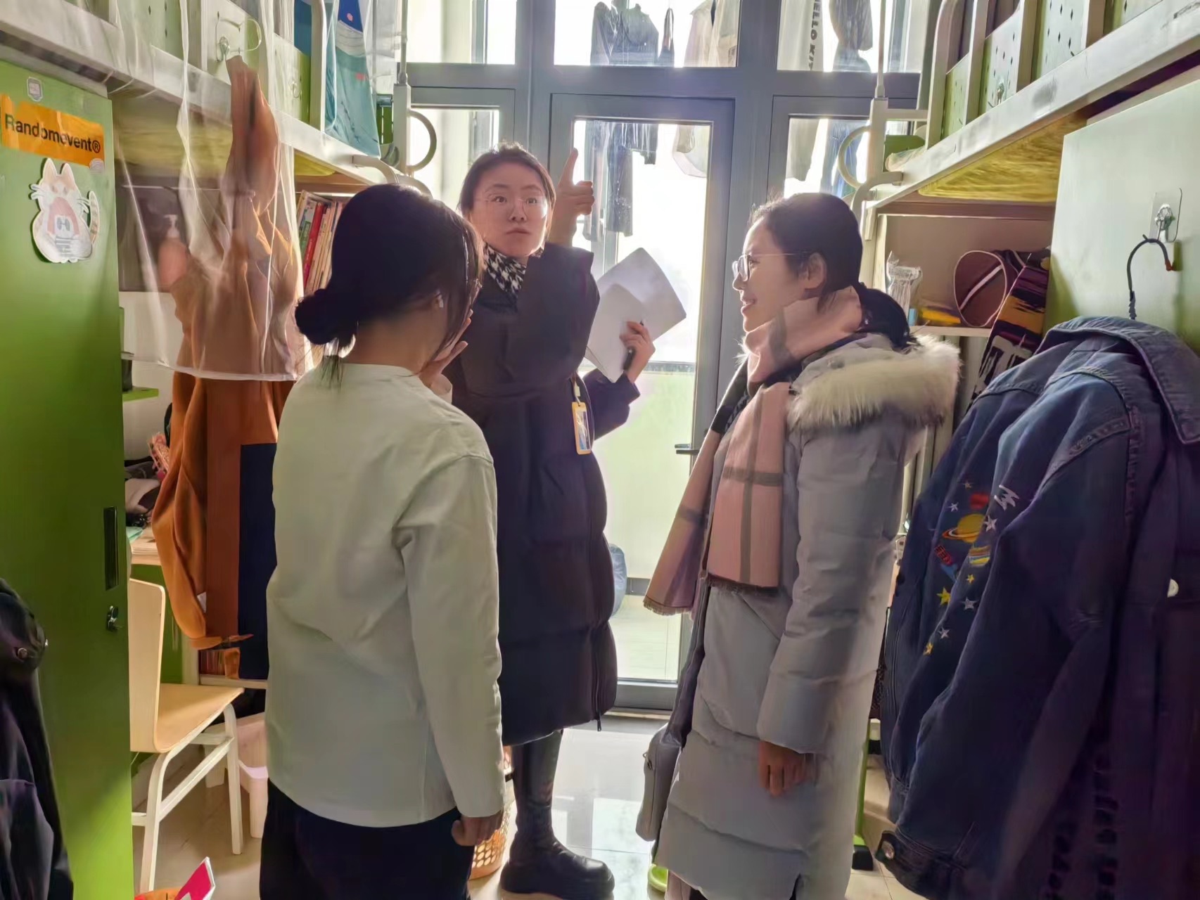 12月14日,學生處、研究生工作部、公共事務處、保衛處負責人以及各學院輔導員協同聯動,組成11個聯合檢查組,對全校兩校區5個組團、12棟宿舍樓10個學院的348間學生宿舍進行了抽查。