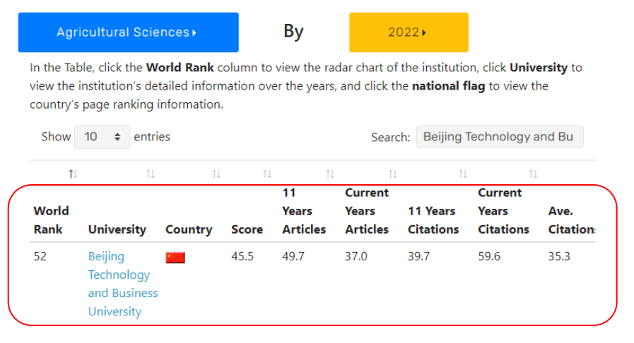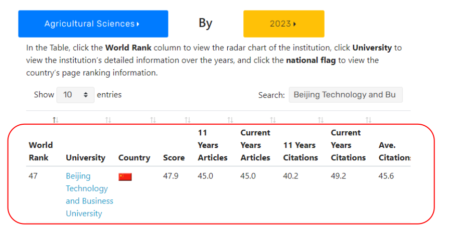近日發(fā)布的2023年NTU世界大學排名中,我校以食品為主要支撐的農(nóng)業(yè)科學領域世界大學排名由2022年的第52位上升為2023年的第47位,取得了突破,這標志著該領域的建設取得了顯著的實績,學術水平和學術影響力持續(xù)提升。