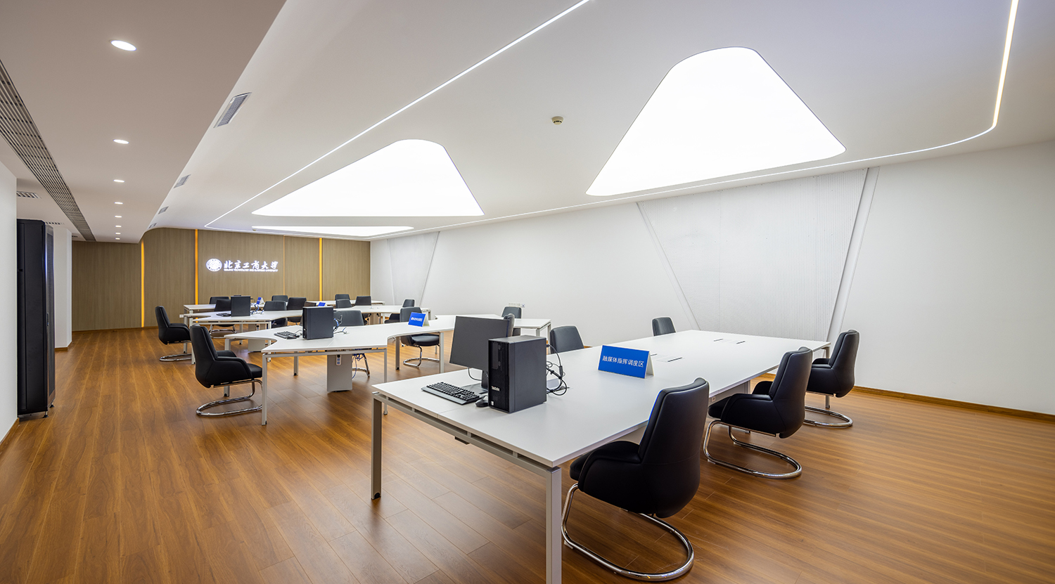 數(shù)字未來中心坐落于北京工商大學阜成路校區(qū)教三樓五層,是學校數(shù)字化轉(zhuǎn)型創(chuàng)新試驗區(qū),建設(shè)了“直錄直播、互聯(lián)互通、資源共享”的智慧環(huán)境,實現(xiàn)教學資源數(shù)字化;搭建智慧教學一體化平臺,實現(xiàn)管理流程數(shù)字化;構(gòu)建新維教學空間,實現(xiàn)教學社群數(shù)字化;創(chuàng)新人才培養(yǎng)模式,實現(xiàn)人才培養(yǎng)數(shù)字化;推動過程數(shù)據(jù)治理,實現(xiàn)教學管評數(shù)字化。