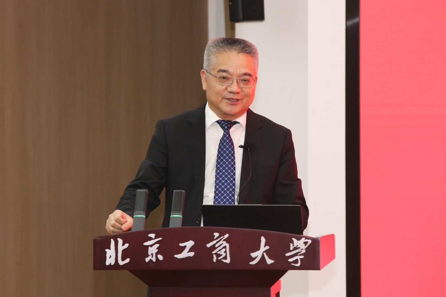 揭牌儀式上,黃先開致歡迎辭,向與會嘉賓致以誠摯謝意,并分享了北京工商大學數(shù)字化轉(zhuǎn)型的經(jīng)驗。黃先開指出,教育信息化作為重要的引擎和驅(qū)動力,已經(jīng)成為影響教育現(xiàn)代化進程的關(guān)鍵環(huán)節(jié)和核心要素,北京工商大學作為教育部確立的首批教育信息化試點單位之一,多年來不遺余力推進建設(shè)智慧校園新空間,打通校園數(shù)字動脈,營造多元個性的教育新生態(tài)。學校在教育數(shù)字化實踐的過程中,開創(chuàng)四個路徑創(chuàng)新:一是資源數(shù)字化,打造“互聯(lián)互通、直錄直播、資源共享”的教學環(huán)境,把所有的教學資源轉(zhuǎn)變?yōu)閿?shù)字化的資源。二是管理流程的數(shù)字化,學校打造了智慧教學一體化平臺,管理業(yè)務與全流程通過平臺打通完成。三是師生互動數(shù)字化,目前學校建設(shè)了新維教學空間,老師、學生、管理者都可以在此空間中溝通互動。四是教學服務個性化,幫助學生個性化、自主化地完成學業(yè),提升個人能力,得到全面發(fā)展。同時,黃先開希望與大家一起努力,在教育數(shù)字化轉(zhuǎn)型方面做出積極貢獻。