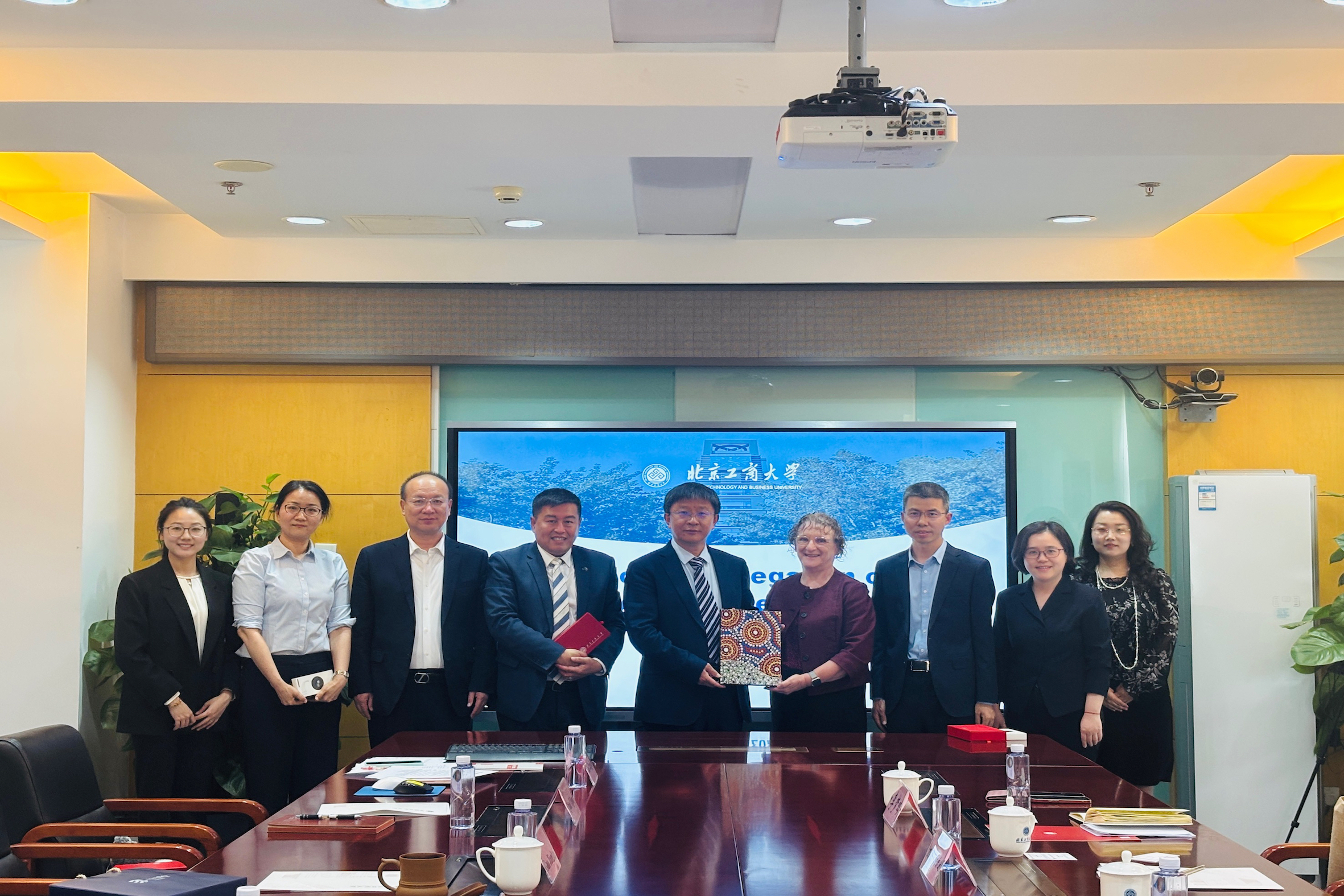 凱倫·納爾遜對郭建華的熱情接待表示感謝。她介紹了澳大利亞南昆士蘭大學的發展歷程、學科建設、優勢專業以及兩校合作交流項目的情況。她指出,北京工商大學是南昆士蘭大學重要的合作伙伴之一,雙方簽署合作協議以來,雙方合作交流交往密切,期待與我校能夠繼續在食品、材料、計算機以及交叉學科方面深化合作交流,推動更多合作項目的落地和實施。