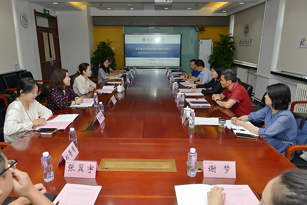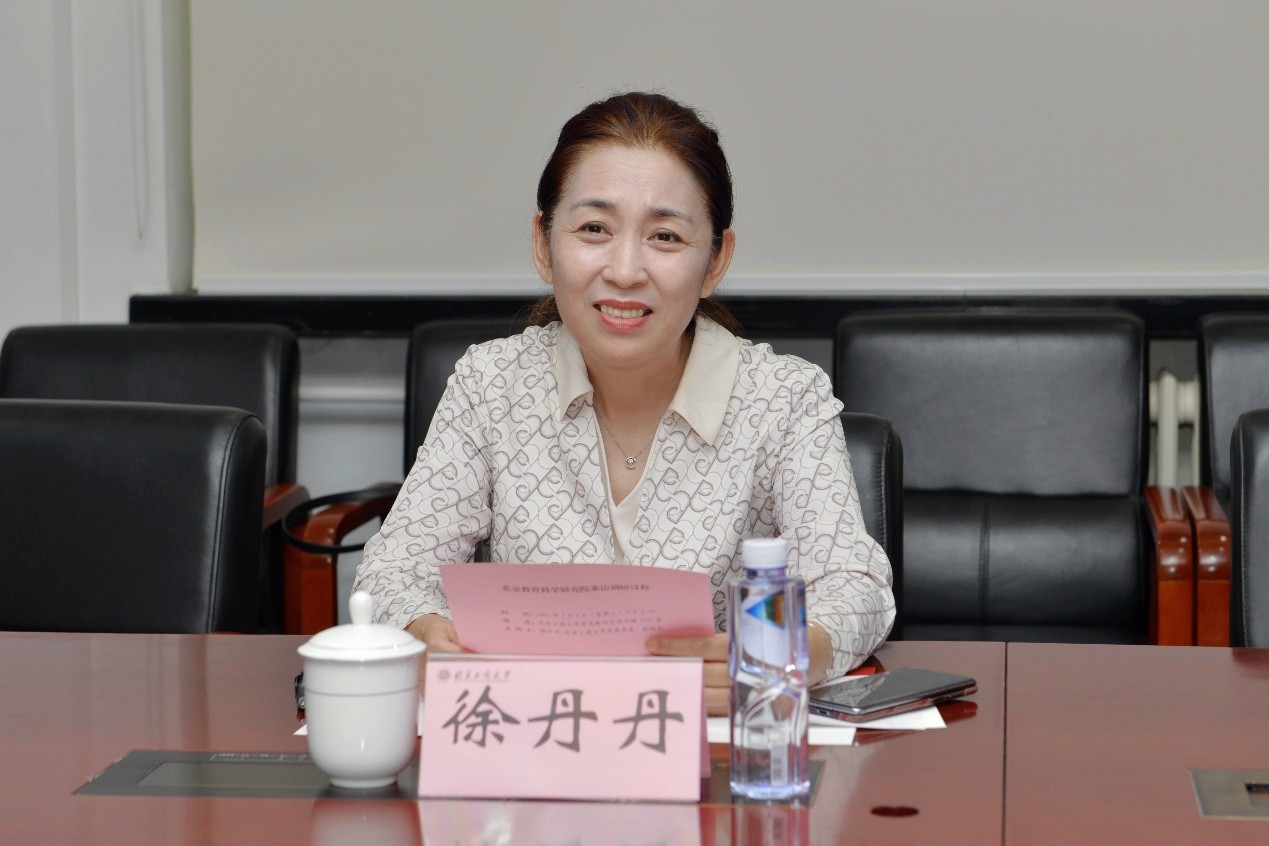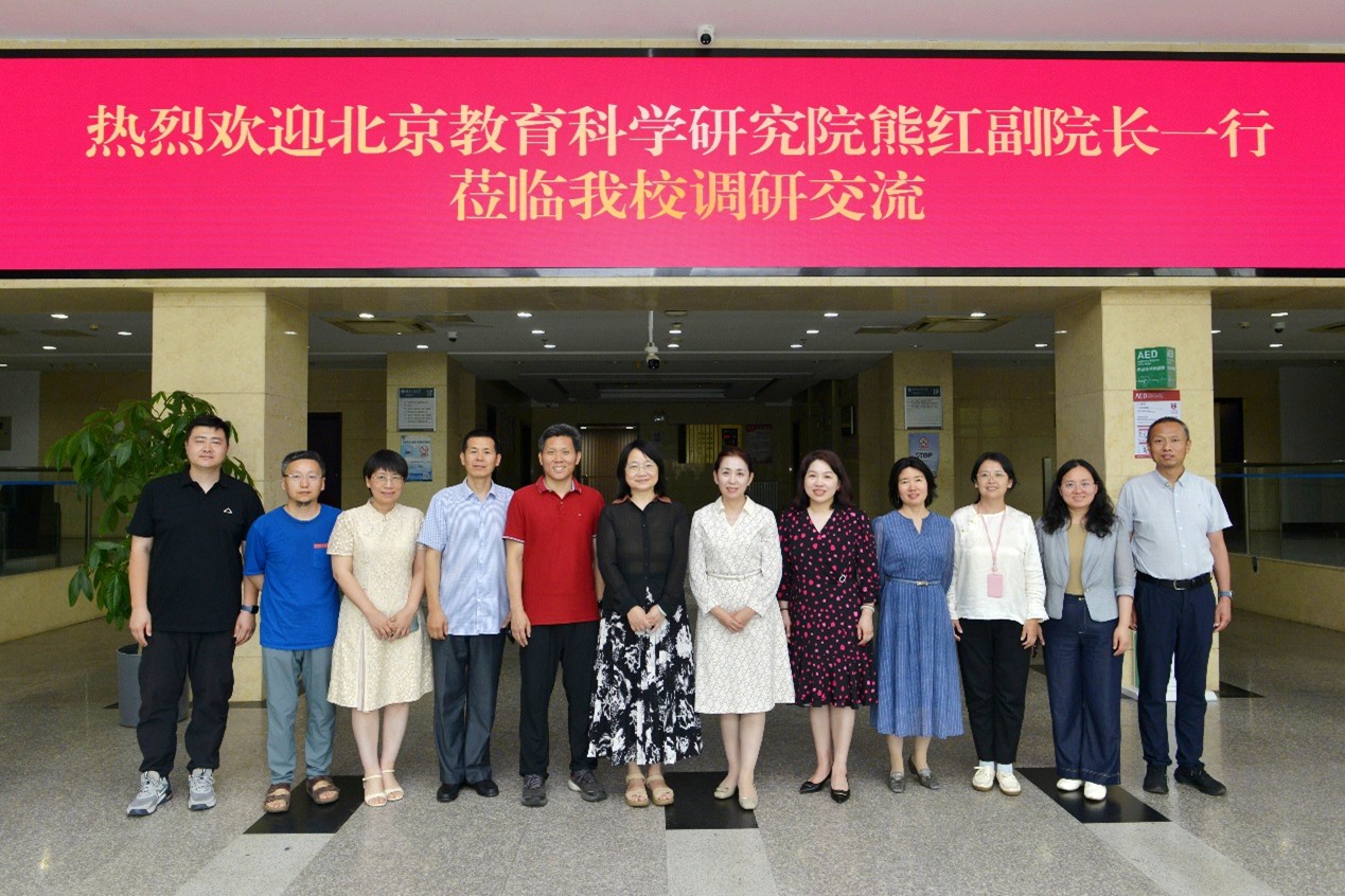 7月2日,北京教育科學研究院領(lǐng)導一行蒞臨學校開展調(diào)研交流活動。北京教科院黨委委員、副院長熊紅、院辦公室主任王永哲、財務處處長魏筠、人事處副處長崔春艷、培訓中心主任李文義、院辦公室干部劉鉑參加座談。會議由學校黨委常委、副校長徐丹丹主持。