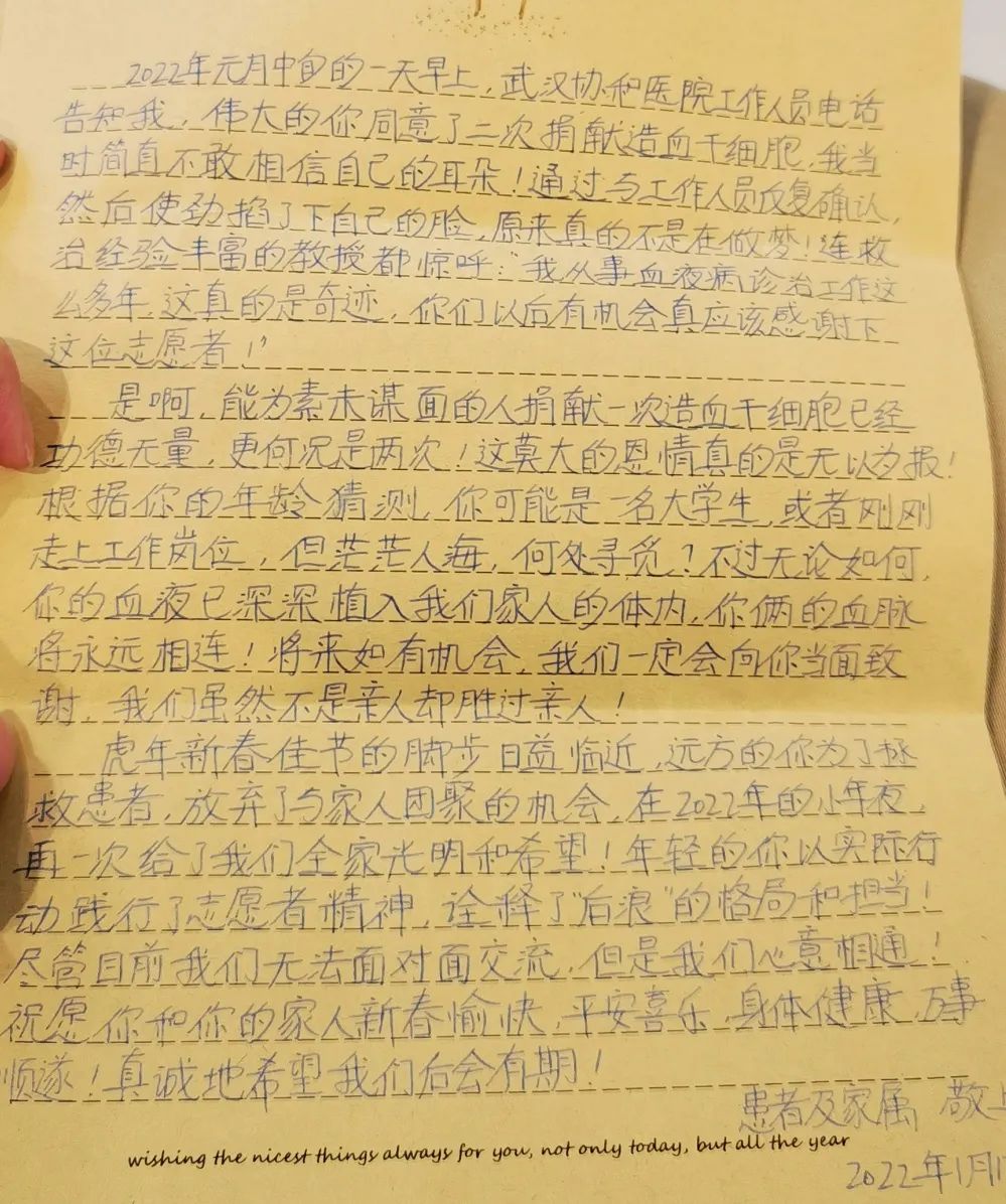 李明的善舉,兩度托起了一個家庭的希望,懷著感恩之情,受助者的愛人兩次為李明手寫感謝信,表達了全家人對李明的感謝和祝福:“年輕的你以實際行動踐行了志愿者精神,詮釋了‘后浪’的格局和擔當!”