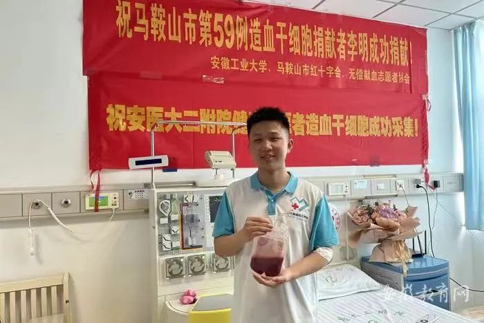 兩年后的一個春日,正在工廠測試畢業設計產品性能的李明接到了中華骨髓庫馬鞍山站工作人員的來電:“您的HLA配型與一名白血病重癥患者吻合?!斌@訝、忐忑、緊張、欣喜……幾種情感瞬間涌上了李明的心頭,他深知,配型成功的概率只有萬分之一甚至幾十萬分之一,這幾乎是受捐者延續生命“唯一的機會”。李明感到身上有一種為受助者帶來生命之光的責任,他當即毫不猶豫地表示:“我同意進行骨髓捐獻!”