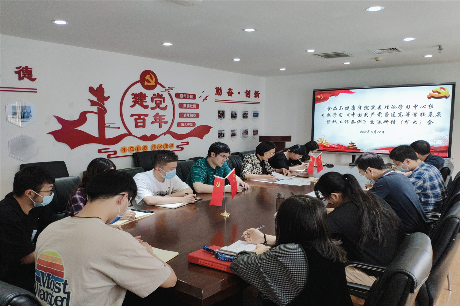5月17日,食品與健康學院黨委召開了理論學習中心組學習(擴大)會,學習了新修訂的《中國共產黨普通高等學?;鶎咏M織工作條例》。黨委理論學習中心組成員及黨支部書記參會,會議由學院黨委書記胡燕霞主持。