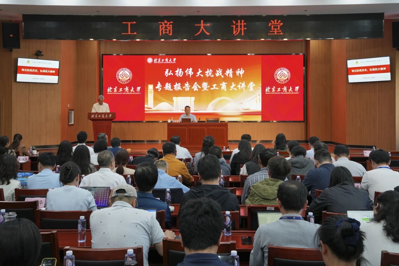 為賡續(xù)傳承偉大抗戰(zhàn)精神、偉大民族精神,從波瀾壯闊的歷史中汲取前行力量,9月24日,我校弘揚(yáng)偉大抗戰(zhàn)精神專題報(bào)告會(huì)暨2025年秋季學(xué)期“工商大講堂”第一講在阜成路校區(qū)舉行。國防大學(xué)路國朝教授應(yīng)邀作題為《銘記抗戰(zhàn)歷史,弘揚(yáng)抗大精神》的專題報(bào)告,校院兩級(jí)黨委理論學(xué)習(xí)中心組成員、師生代表等參加學(xué)習(xí)。各二級(jí)黨組織組織師生在分會(huì)場線上觀看。校黨委副書記李中奇主持講座。