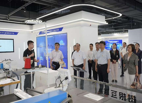 最后,學(xué)校黨委理論學(xué)習(xí)中心組成員一行參觀了國(guó)家工業(yè)互聯(lián)網(wǎng)大數(shù)據(jù)中心和工業(yè)互聯(lián)網(wǎng)測(cè)試體驗(yàn)中心,深入了解了裝備制造業(yè)數(shù)字供應(yīng)鏈平臺(tái)、工業(yè)數(shù)字化碳管理公共服務(wù)平臺(tái)、中小企業(yè)數(shù)字化轉(zhuǎn)型服務(wù)平臺(tái)運(yùn)行模式,通過(guò)基于工作互聯(lián)網(wǎng)平臺(tái)的智能化檢測(cè)、基于工作互聯(lián)網(wǎng)平臺(tái)的數(shù)字孿生、基于工作互聯(lián)網(wǎng)平臺(tái)的網(wǎng)絡(luò)化協(xié)同等模塊全方位了解中國(guó)互聯(lián)網(wǎng)領(lǐng)域的先進(jìn)技術(shù)和應(yīng)用。