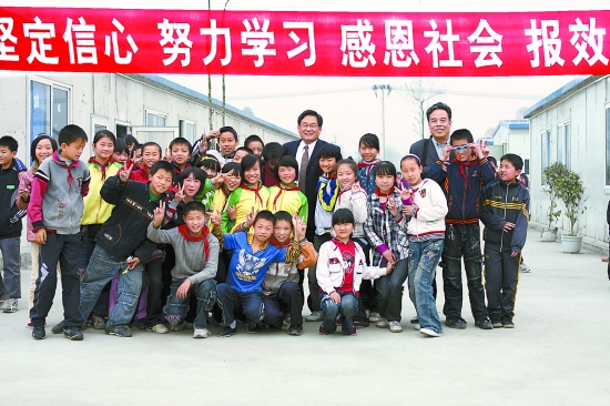 北京工商大學日前與四川什邡市南泉初級中學建立共建關系,開展了“每天節約一元錢,資助災區好少年”的“一幫一”助學活動。第一批資助的55名學生,已經全部收到資助款。全校教職工還捐獻31萬余元,用于南泉初級中學重建過程中計算機多媒體教室的建設、電教器材和圖書設備的購置等。圖為工商大學的老師和災區孩子們在一起。