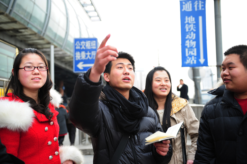 一到周末,只要不趕上期末考試,這位就讀于北京工商大學的大男孩就會出現在動物園交通樞紐處,為異鄉人指點迷津。在韓昱琦看來,北京這些年的發展實在太快,新增的公交線路如爬山虎一樣將城市編織得密不透風,這些密如蛛網的公交線路,數以百計的沿線站名、換乘站點對于老北京人來說看著都頭疼……