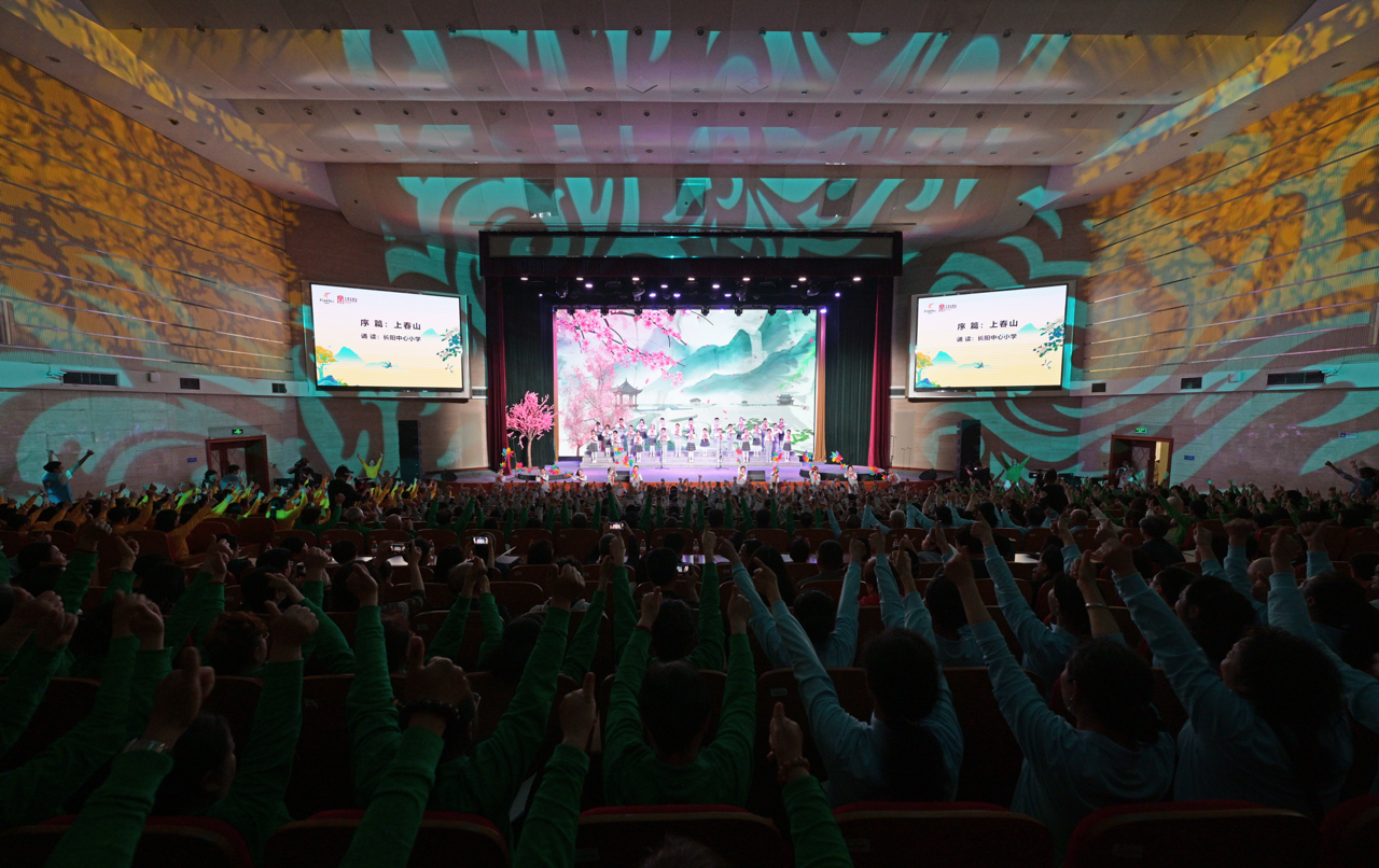 室內(nèi)活動(dòng)即大型群眾詩(shī)歌誦讀會(huì),拉開(kāi)了房山區(qū)2024年全民閱讀活動(dòng)序幕,同步啟動(dòng)了北京工商大學(xué)讀書(shū)活動(dòng)。詩(shī)歌誦讀會(huì)中,來(lái)自房山區(qū)的各界誦讀愛(ài)好者組成了千人誦讀團(tuán),他們中有朝氣蓬勃的中小學(xué)生,有青春洋溢的大學(xué)生,更有精神矍鑠的老年人,他們用或稚嫩、或鏗鏘、或輕柔的聲音誦讀經(jīng)典,抒發(fā)心中萬(wàn)千熱愛(ài)。