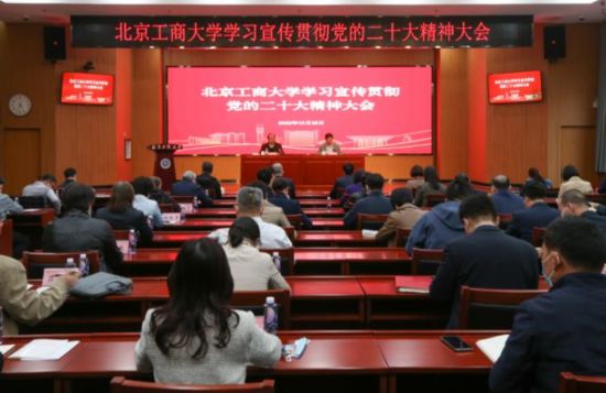 黨的二十大召開以來,北京工商大學把學習宣傳貫徹黨的二十大精神作為當前和今后一個時期的首要政治任務,精心組織學習研討,廣泛開展宣講宣傳,堅持學思用貫通、知信行合一,組織全校師生多種形式開展學習宣傳,著力在“全面領學 宣講促學 聚焦研學 廣泛活學”上下功夫,推動黨的二十大精神在校園里形成生動實踐,切實做到入腦入心入行。