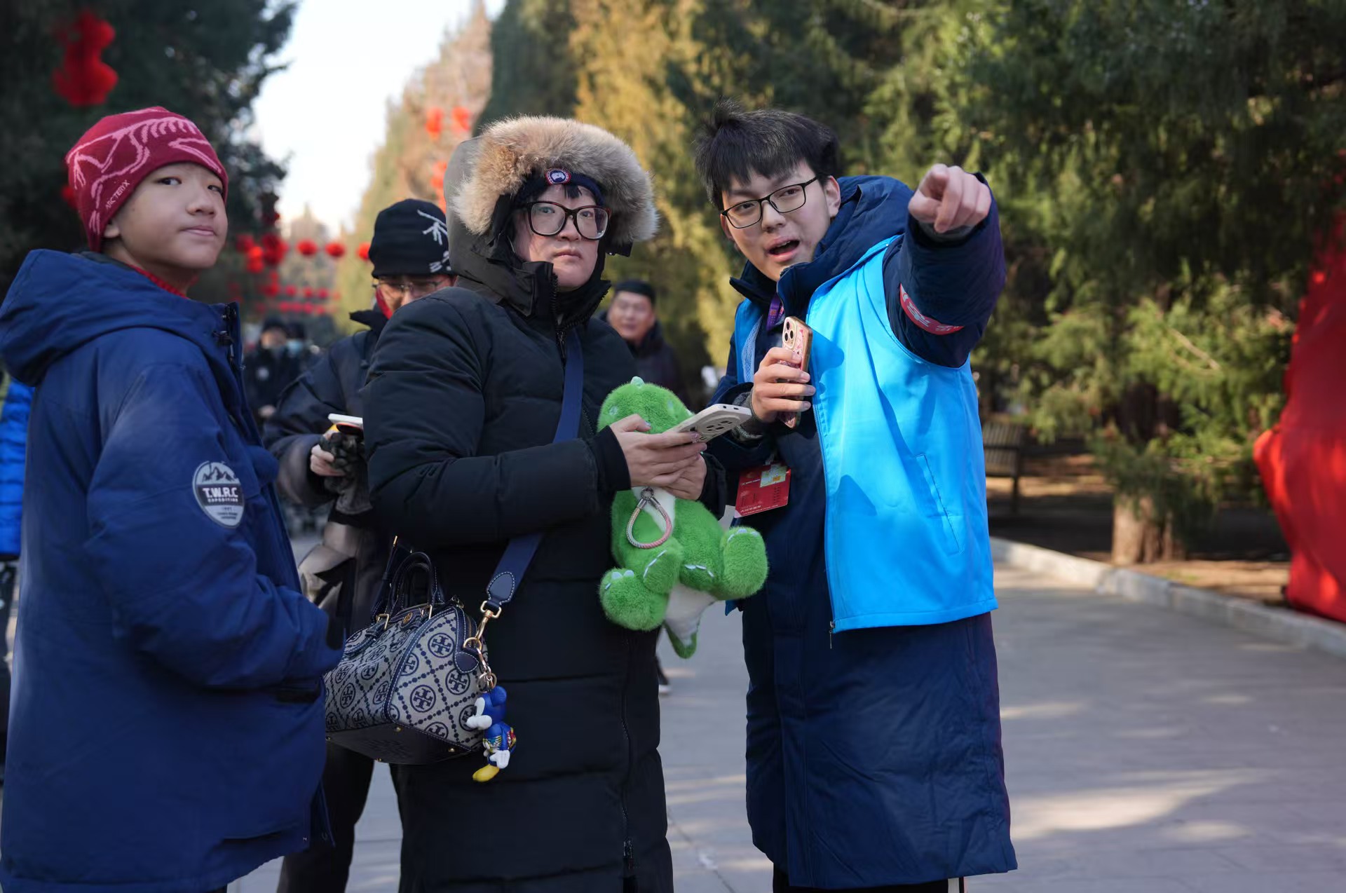 北京城市學院學生吳旻的春節(jié)假期也在志愿服務中度過。去年,她曾在地壇廟會的引導崗服務,對仿清祭地表演等活動的舉辦地點和時間了然于胸。今年,她除了幫游客“找到北”,還當上了該校志愿者小組長,要負責同學的崗位分配、物料分發(fā)等工作。她說:“在志愿者的崗位上過年,年味兒挺足!”