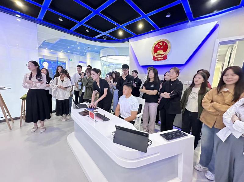 活動(dòng)中,學(xué)生們了解到在全球范圍內(nèi)只有中國擁有互聯(lián)網(wǎng)法院,互聯(lián)網(wǎng)法院是中國特色互聯(lián)網(wǎng)司法的有機(jī)組成部分。隨后,在“在線訴訟體驗(yàn)區(qū)”,學(xué)生們重點(diǎn)參觀與學(xué)習(xí)了訴訟E點(diǎn)通、e版權(quán)訴源共治體系、區(qū)塊鏈展示區(qū)、第一代網(wǎng)絡(luò)法庭及AI法官等內(nèi)容。