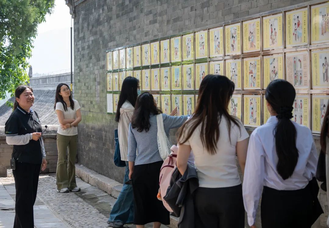 備賽期間,北京工商大學40余名師生走進云居寺,由講解員帶領學生全程游覽,漫步于五大院落之間,近距離感受古寺的宏偉布局和千年歷史底蘊。講解員詳細介紹每一處古跡背后的故事,學生們駐足凝望古塔,仔細研習古建規制,認真解碼古塔、云紋、斗拱飛檐等視覺符號的文化內涵,挖掘其中的創意亮點,精準提煉出能夠展現云居寺特色的文化元素,為文創產品設計奠定基礎。