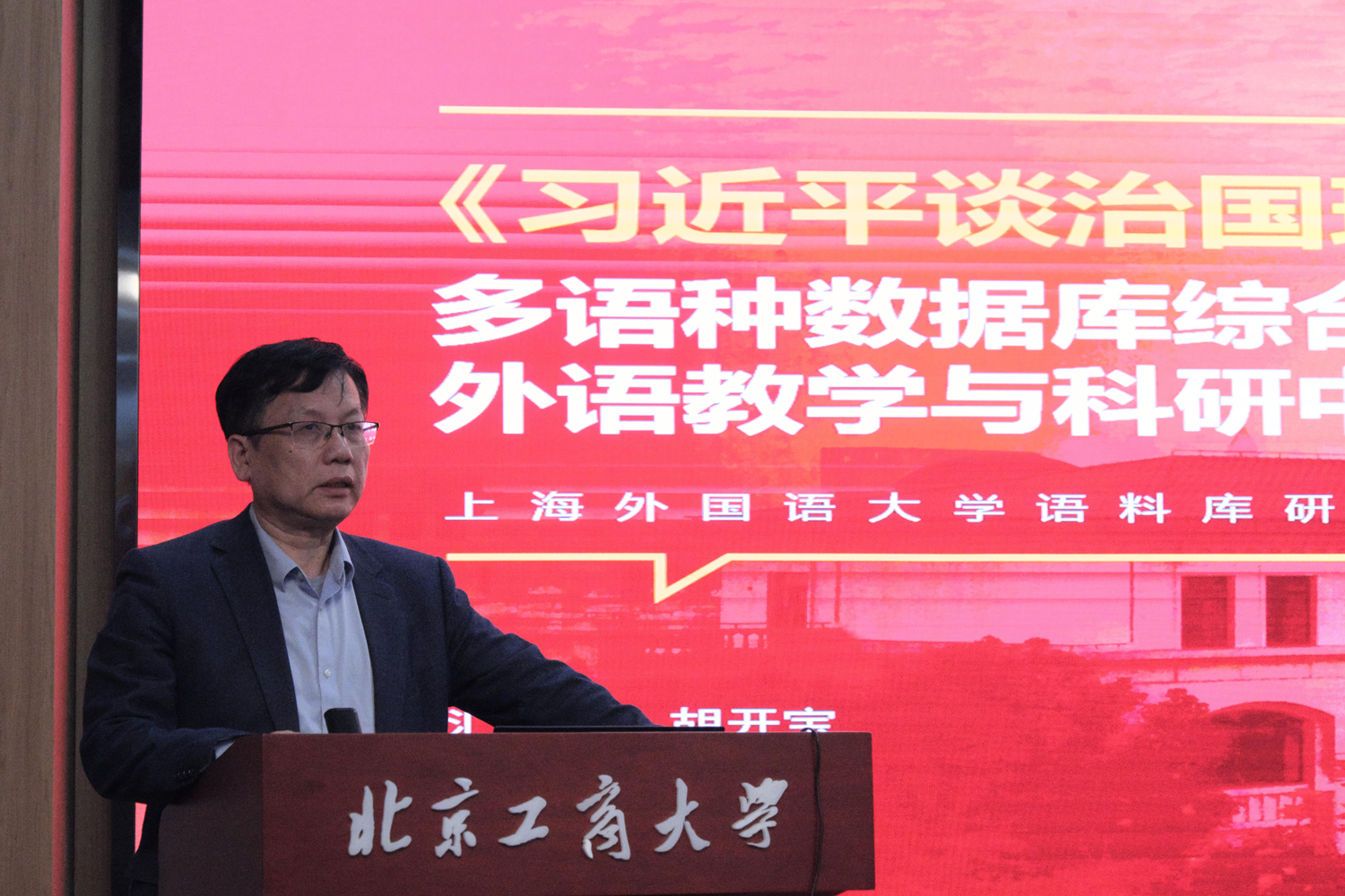 在主旨發(fā)言環(huán)節(jié),語言與傳播學(xué)院關(guān)濤副教授以“《習(xí)近平談治國理政》多語種數(shù)據(jù)庫綜合平臺助力大學(xué)英語課程思政——以北京工商大學(xué)為例”為題進(jìn)行匯報(bào)。吳濛副教授以“《習(xí)近平談治國理政》多語種數(shù)據(jù)庫綜合平臺在大學(xué)英語‘三進(jìn)’工作中的實(shí)踐路徑探索”為題進(jìn)行匯報(bào)。劉思含老師進(jìn)行“語料庫賦能筆譯課程思政教學(xué)一以扶貧主題翻譯為例”的匯報(bào)。苗天順副教授進(jìn)行“人工智能賦能外語課程思政構(gòu)建”的匯報(bào)。胡開寶教授對4位教師的匯報(bào)分享作點(diǎn)評發(fā)言,他充分肯定了語言與傳播學(xué)院英語教學(xué)的探索實(shí)踐,并對語料庫助力教學(xué)科研的未來作出了規(guī)劃指導(dǎo)。