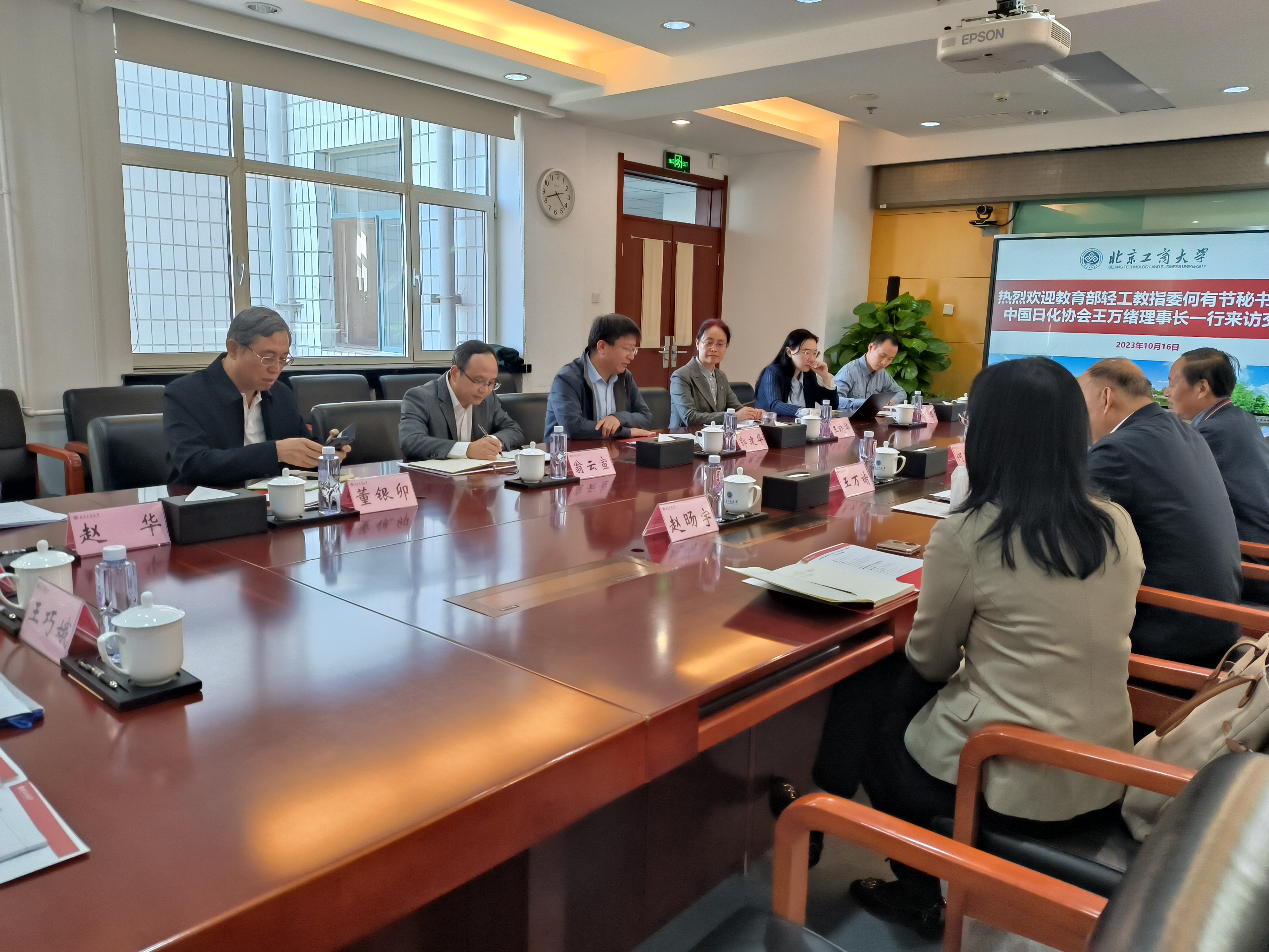 郭建華對何有節、王萬緒一行來訪表示熱烈歡迎,結合學校宣傳片,他介紹了學校的歷史沿革、辦學特色、學科建設、科學研究等情況。他表示,化妝品作為北京工商大學的特色學科在學校的發展中具有重要地位,化妝品行業是北京市產業鏈創新的重要環節,需要積極推動產學研融合發展,不斷開發出具有國內特色的高質量產品,以滿足不同人群的需求。我校化妝品專業始終致力于積極開拓、不斷創新,以滿足新時代人民對美好生活的需要。