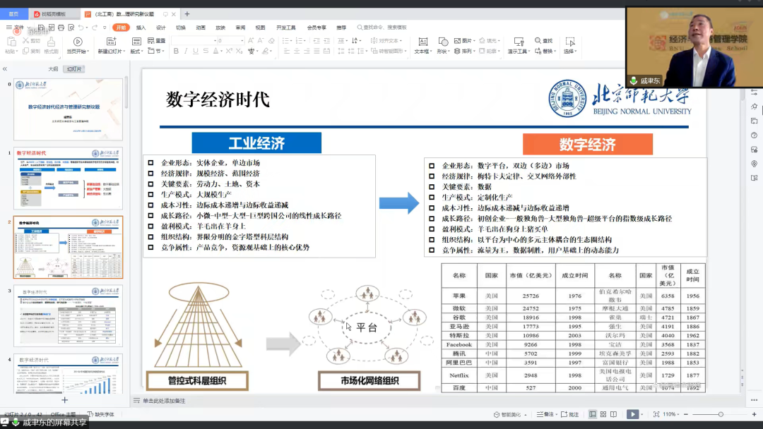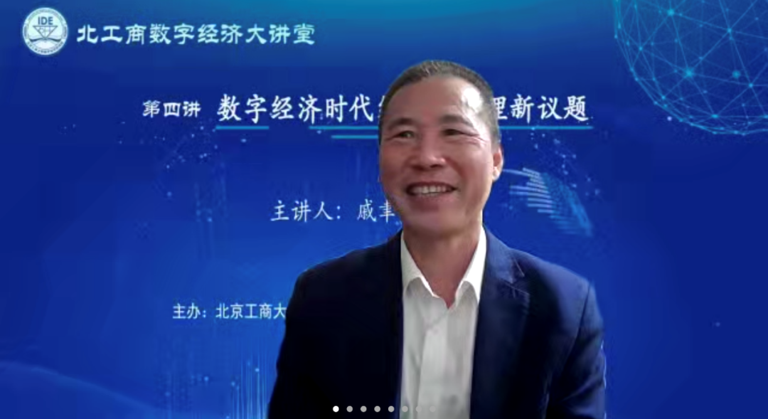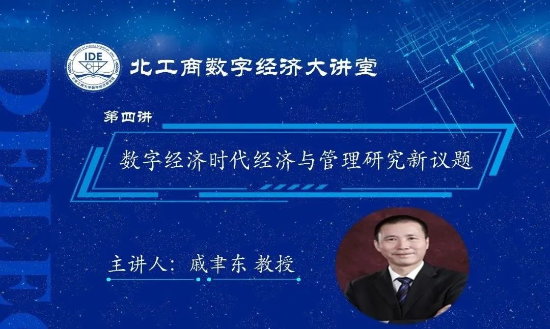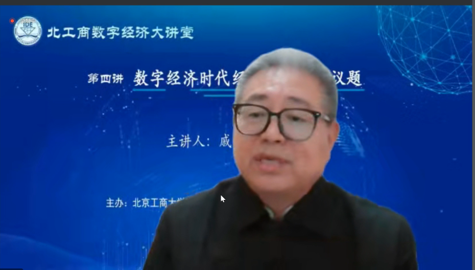 12月21日,北工商數(shù)字經(jīng)濟大講堂第四講在線上舉辦。本期大講堂由北京工商大學數(shù)字經(jīng)濟研究院、國際經(jīng)管學院、經(jīng)濟學院聯(lián)合主辦,北京師范大學經(jīng)濟與工商管理學院院長戚聿東教授作題為“數(shù)字經(jīng)濟時代經(jīng)濟與管理研究新議題”的主題講座。數(shù)字經(jīng)濟研究院院長白津夫教授,經(jīng)濟學院黨委書記呂素香教授、院長倪國華教授,國際經(jīng)管學院黨委書記郭毅教授、科研院社科處副處長張浩教授以及我校國際經(jīng)管學院、經(jīng)濟學院師生150余人參加了本期大講堂。講堂由數(shù)字經(jīng)濟研究院執(zhí)行院長葛紅玲教授主持。