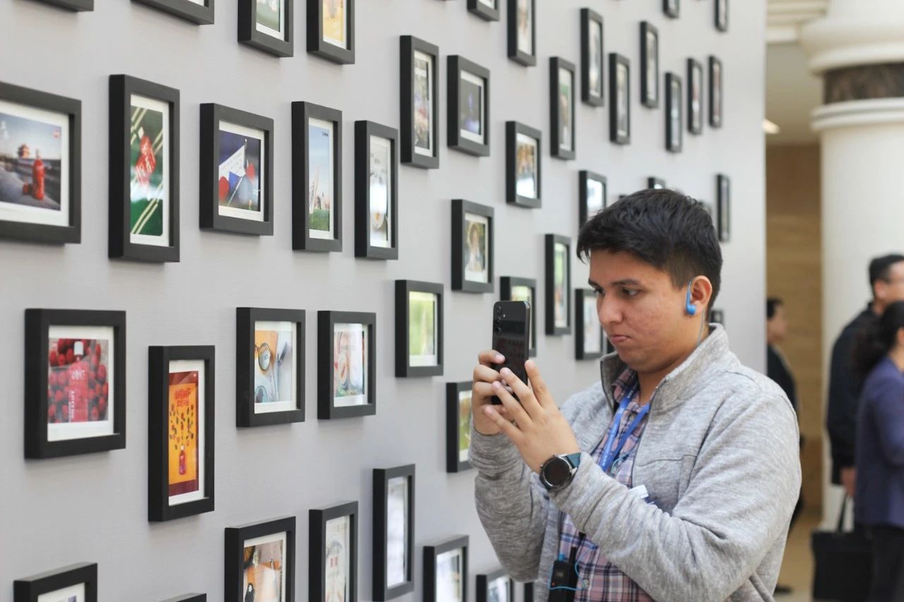 在圖書館大廳,記者們參加了“絲網印刷”文化體驗活動。傳媒與設計學院品牌設計方向的研究生將中國傳統經典圖形圖案及北京經典文化符號,以當代青年人的視角進行設計再創作,并與絲網印刷革新刷技術手段相結合,邀請記者們共同創作兼具古今文化藝術韻味的絲網版畫作品。當大家看到自己制作的成果時,都紛紛感嘆絲網印刷的神奇和中國傳統文化的魅力。