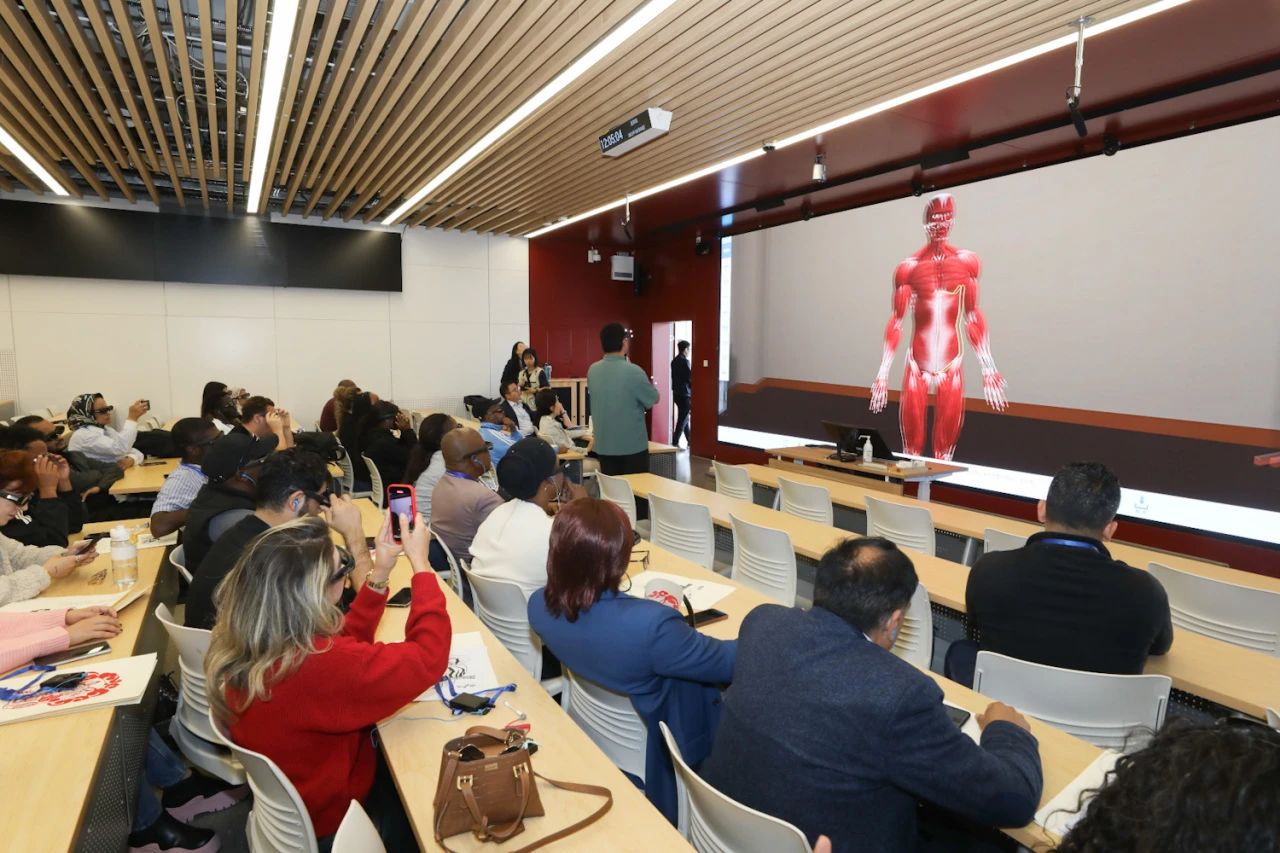 記者們參觀了學校智慧教室,深入了解了學校智慧教室智能又實用、全面又精細、便捷又舒適、人文又個性、高顏又暖心的設計理念,身臨其境感受了學校“直錄直播、互聯互通、資源共享”的智能育人環境。