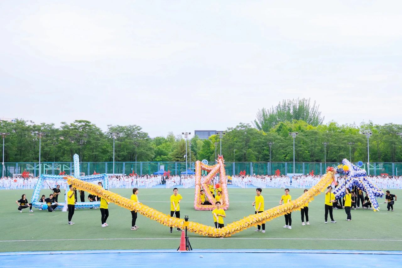表演開(kāi)場(chǎng),龍舞飛揚(yáng)!校舞龍隊(duì)入場(chǎng)。手握游龍,前后照應(yīng),配合默契。隨著音樂(lè)節(jié)奏,龍身盤(pán)旋舞動(dòng),時(shí)而出海,時(shí)而潛淵,聲勢(shì)浩大,一舉點(diǎn)燃賽場(chǎng)熱烈的氛圍。