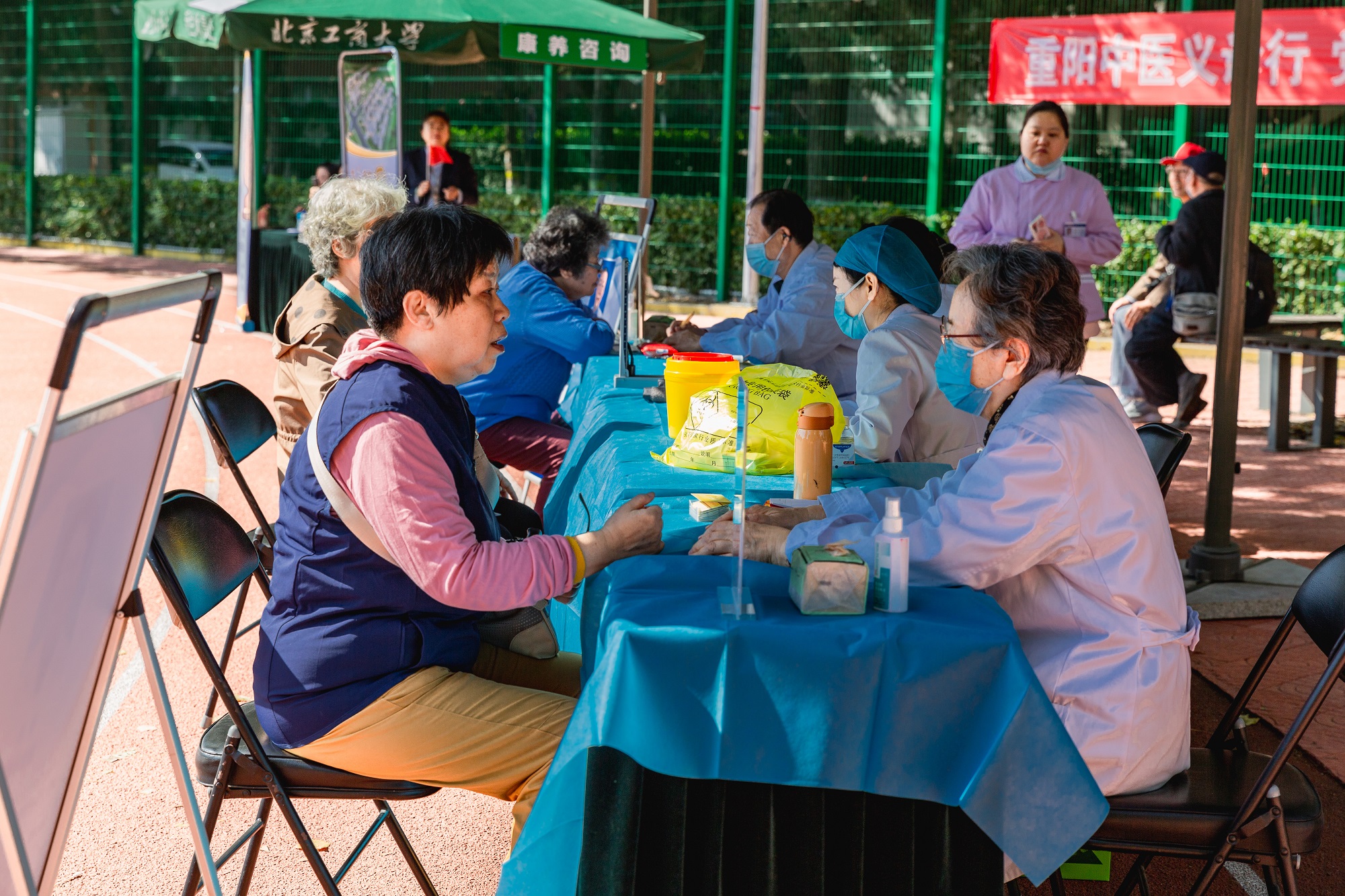 學(xué)校醫(yī)院還組織了“重陽中醫(yī)義診行,黨建關(guān)懷暖桑榆” 黨支部健康義診活動,特別邀請中醫(yī)專家給老同志義診和測血壓等健康服務(wù)活動。專家們?yōu)槔贤緜儼衙}問診,提供個(gè)性化的健康建議;校醫(yī)們則認(rèn)真為他們測量血壓,講解如何保持血壓穩(wěn)定的重要性。這些貼心的服務(wù)讓老同志們充分感受到了學(xué)校的關(guān)懷和溫暖。康養(yǎng)機(jī)構(gòu)也在現(xiàn)場給老同志講解養(yǎng)老方案和理念,供大家有更多的養(yǎng)老選擇。