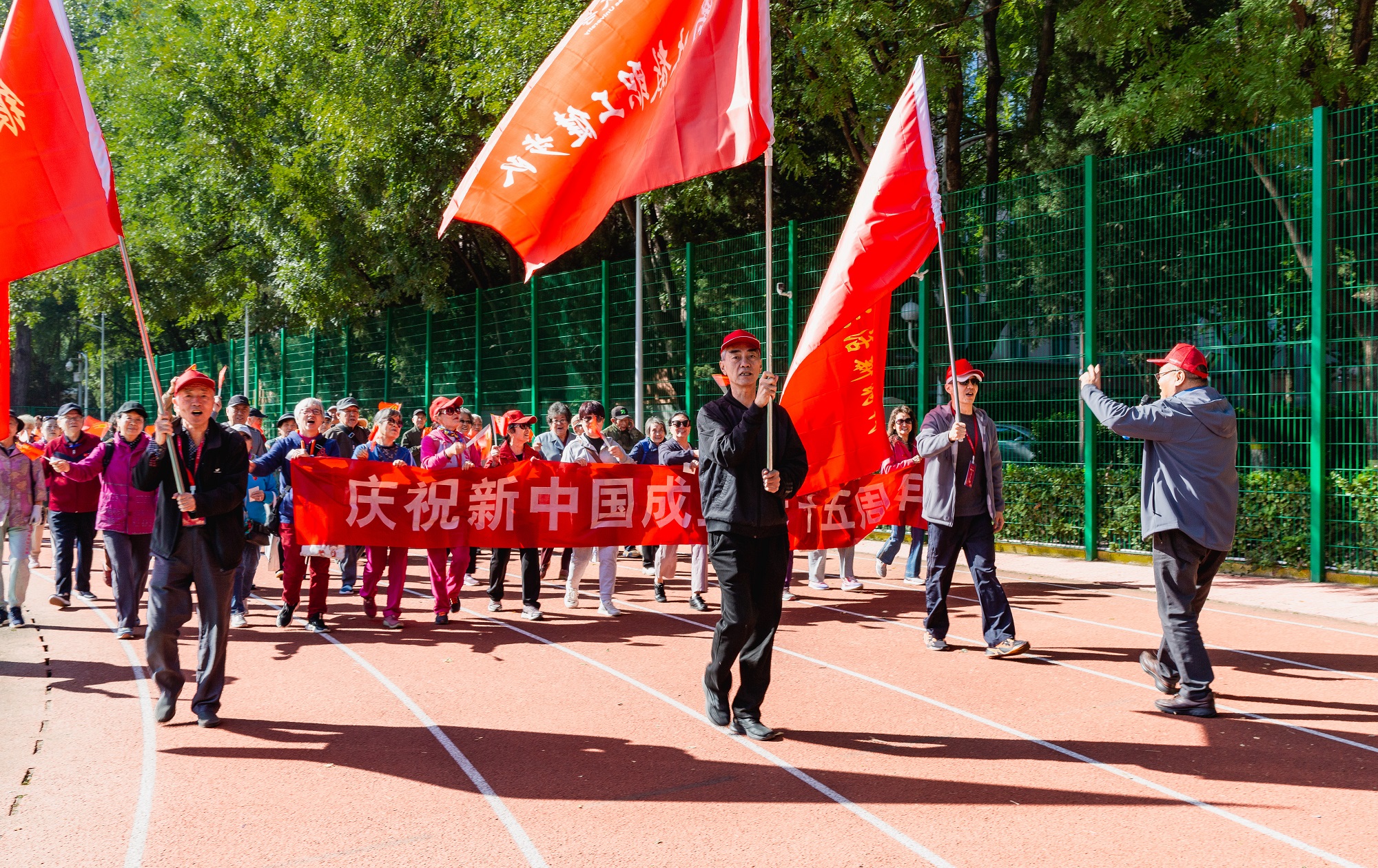 活動當(dāng)天,陽光明媚,學(xué)校操場上人聲鼎沸,彩旗飄揚(yáng)。上午10時(shí)整,隨著一聲整齊的號令,集體健步走活動正式拉開帷幕。老同志們貼著統(tǒng)一的國慶圖標(biāo),臉上滿是自豪與喜悅,他們隨著激昂的紅歌旋律,手舉紅旗,邁著堅(jiān)定的步伐,沿著操場緩緩前行,每一步都踏出了對過往歲月的深情,每次擺動都舞出了對新時(shí)代的美好憧憬,他們用這份獨(dú)有的方式來表達(dá)自己對祖國的深情祝福與無限熱愛。