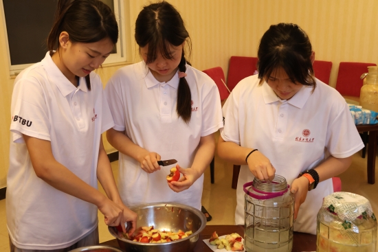 食品與健康學院暑期社會實踐團深入平谷區大華山鎮,充分發揮團隊成員各自專業優勢,以專業素養完成桃酒實驗設計,原料處理,數據記錄,數據分析等工作,打造成果轉化應用場景。同時積極參與“村課、村播、村晚、村耕”活動,發揮橋梁紐帶作用,推動校地共建。真正做到在學習中拓寬視野,在實踐中增長才干,全力為大華山高質量發展和高大尚平谷建設貢獻青春力量,推動產學研合作,促進科技成果轉化,實現科技助力鄉村振興。項目的實施不僅有助于傳承與發揚小裕子村獨特的釀酒文化,提升品牌影響力,還能通過科技助力促進產業發展與鄉村振興,提升產品品質,拓寬市場渠道,增加村民收入,進一步推動鄉村經濟發展,并通過深入研究為新的發展理念下鄉村釀酒產業的可持續發展、產品品質提升、市場渠道拓寬以及鄉村經濟發展水平的提高做出積極貢獻。