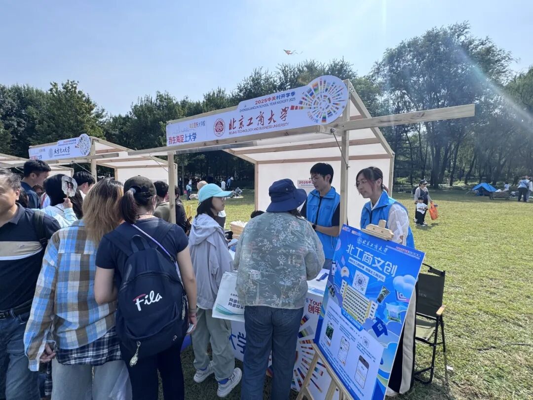 校地攜手,共繪育人新藍圖。9月21日,新生參與“HiYouth創年華”2025中關村開學季活動,作為體驗官深度參與科技互動與文化打卡,親身感受海淀“科技創新策源地”的澎湃活力。部分學生化身文創推廣官,向市民推介北工商文創產品,以青春創意,助力文化傳播。