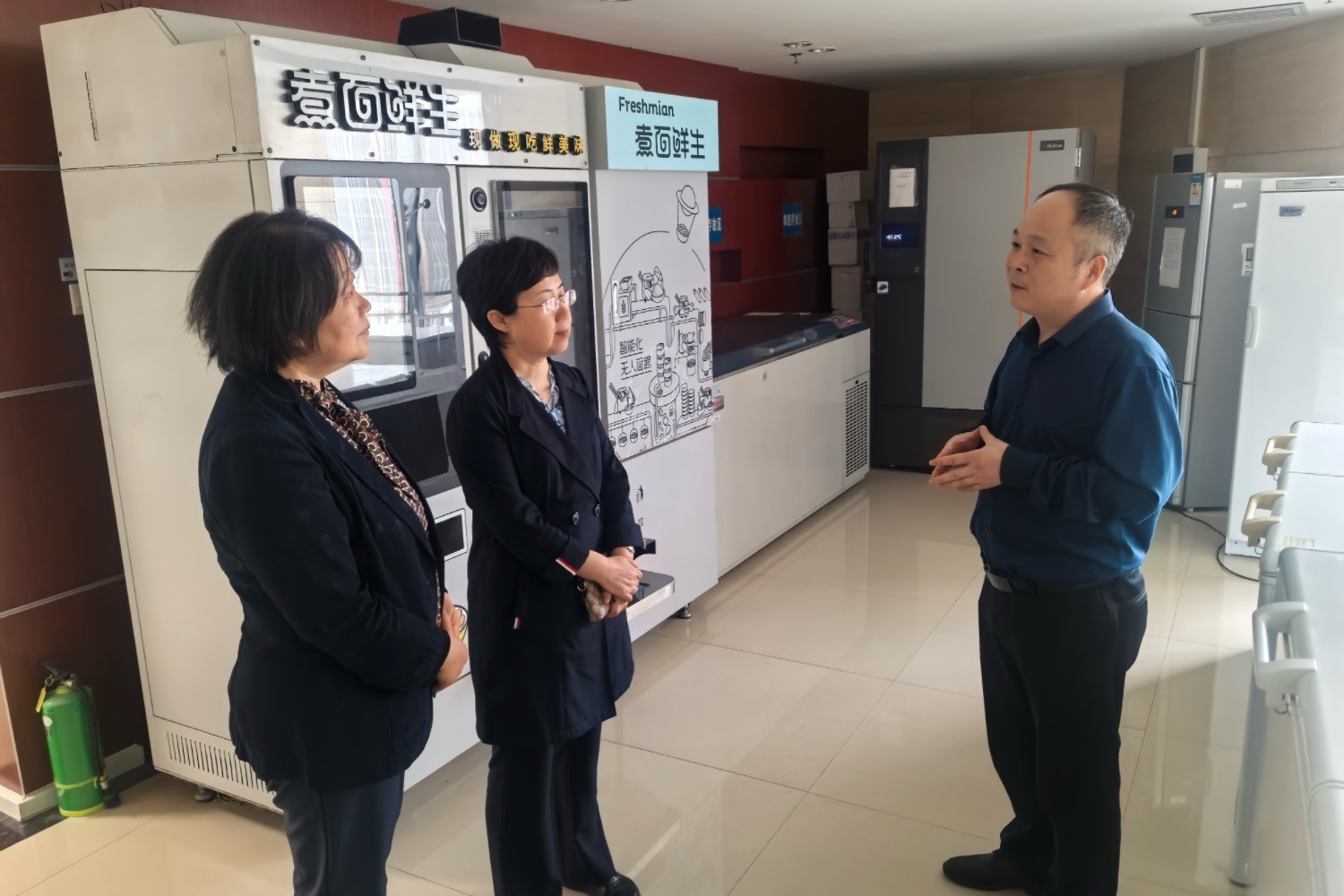 在河南工業大學,調研團隊與糧食和物資儲備學院黨委書記代輝亞等圍繞學科建設、人才培養、績效評價、“雙一流”創建等議題展開座談,并實地考察食品工程實訓基地,深入了解智能鮮濕面生產線、面食加工系統等現代化裝備的運行情況與管理模式。